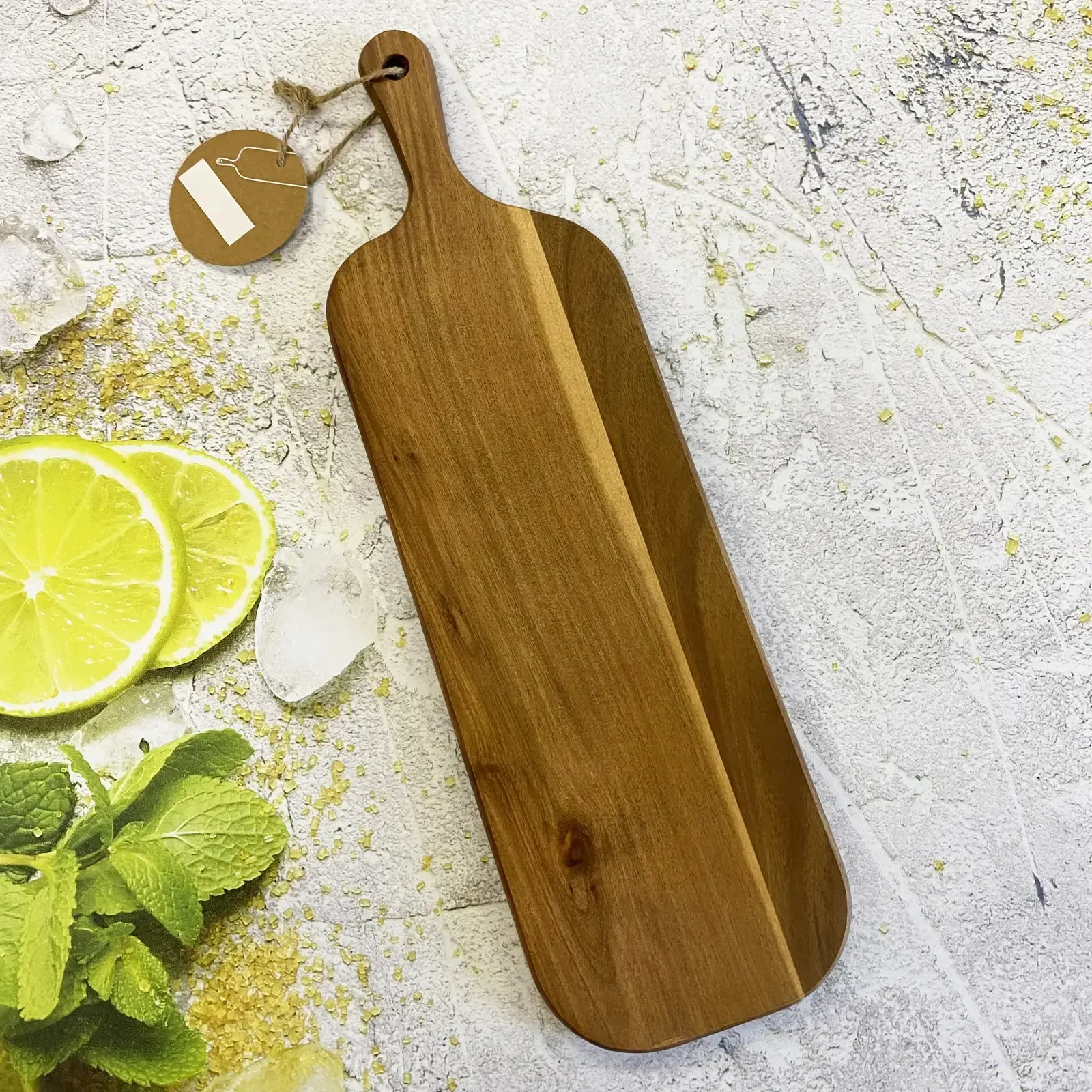 Доска имеет размеры 41х12х1,5 см, что делает её достаточно компактной для хранения, но при этом достаточно большой для удобного использования. Акация — это прочный и долговечный материал, который не только красиво выглядит, но и легко очищается. Вы можете использовать её как для нарезки, так и для подачи блюд на стол.