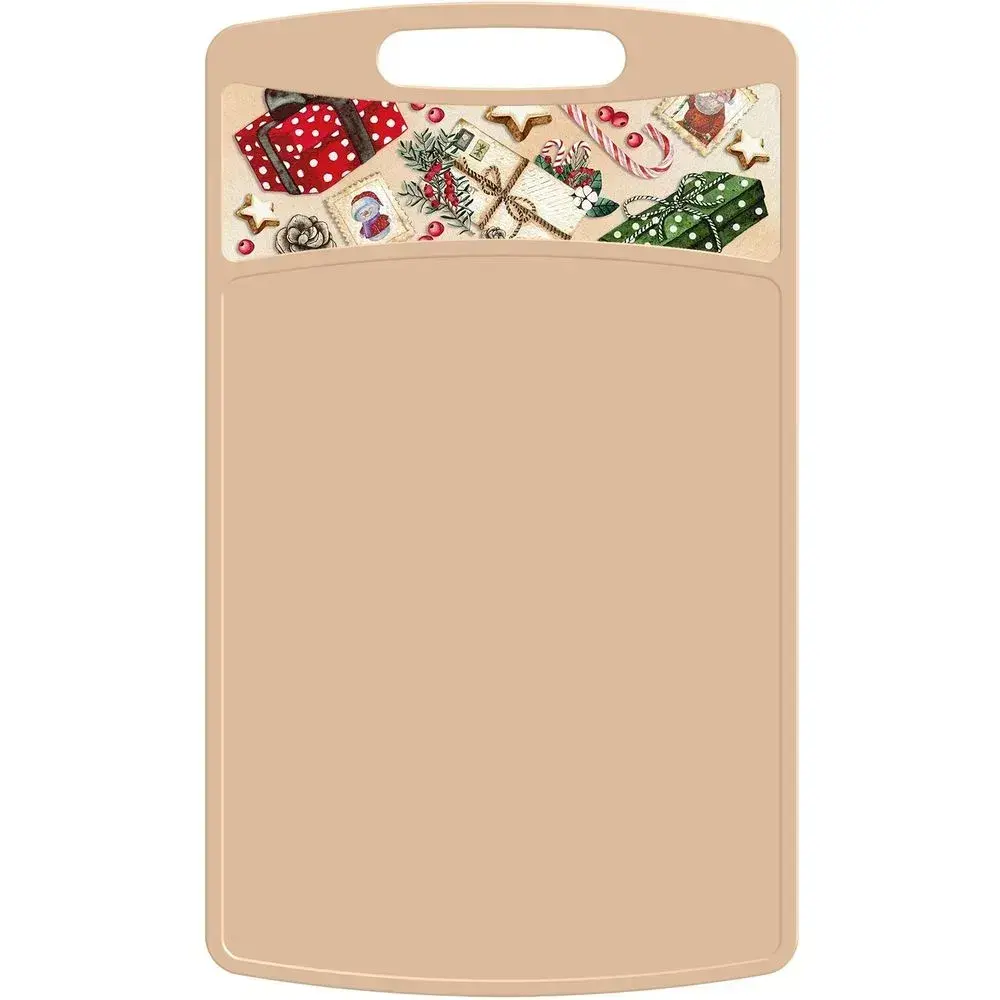 Материал доски — пластик. Цвет — бежевый, декор выполнен в праздничной стилистике. Благодаря компактному размеру доска идеально впишется и в домашнюю, и в дачную кухню. Используйте для ежедневной нарезки и подачи, чтобы добавить уюта и ярких деталей в приготовление ваших блюд.
