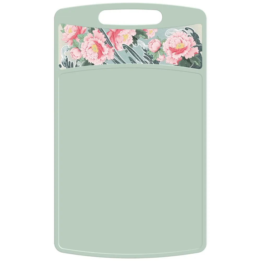 Доска разделочная "Bergamo" прямоугольная 335*220*4мм с декором "Сад пионов" (светло-зеленый) (упако