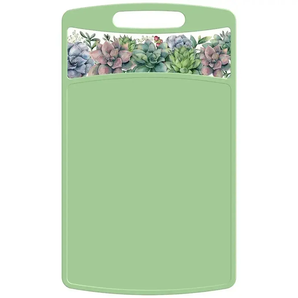 Сочетание эргономики и декора делает эту доску многофункциональным элементом кухни. Природный дизайн гармонично впишется в интерьер в эко-стиле, скандинавском или прованс. Зеленый цвет создает свежий акцент и визуально расширяет пространство.
