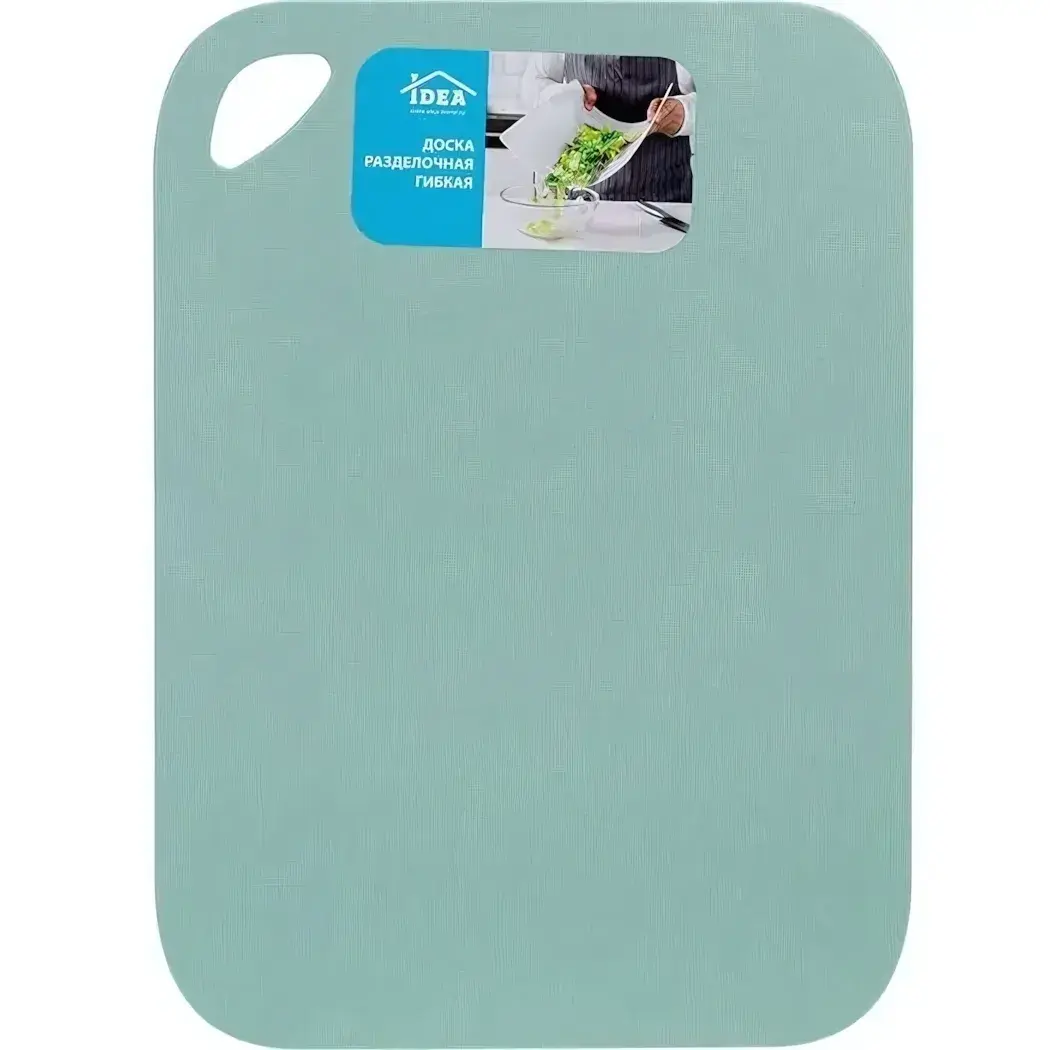 Пластиковая разделочная доска Idea сочетает практичность и эргономичный дизайн. Гибкий материал и продуманная конструкция с отверстием сделают процесс готовки комфортным, а фисташковый цвет добавит свежести кухонному пространству.