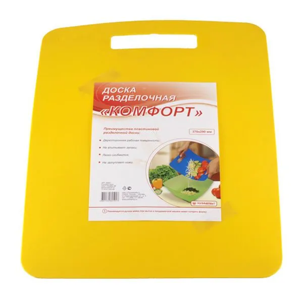 Яркий жёлтый цвет доски «Комфорт» не только поднимет настроение на кухне, но и поможет легко найти её среди других кухонных принадлежностей. Это простое и функциональное решение для вашей кухни.