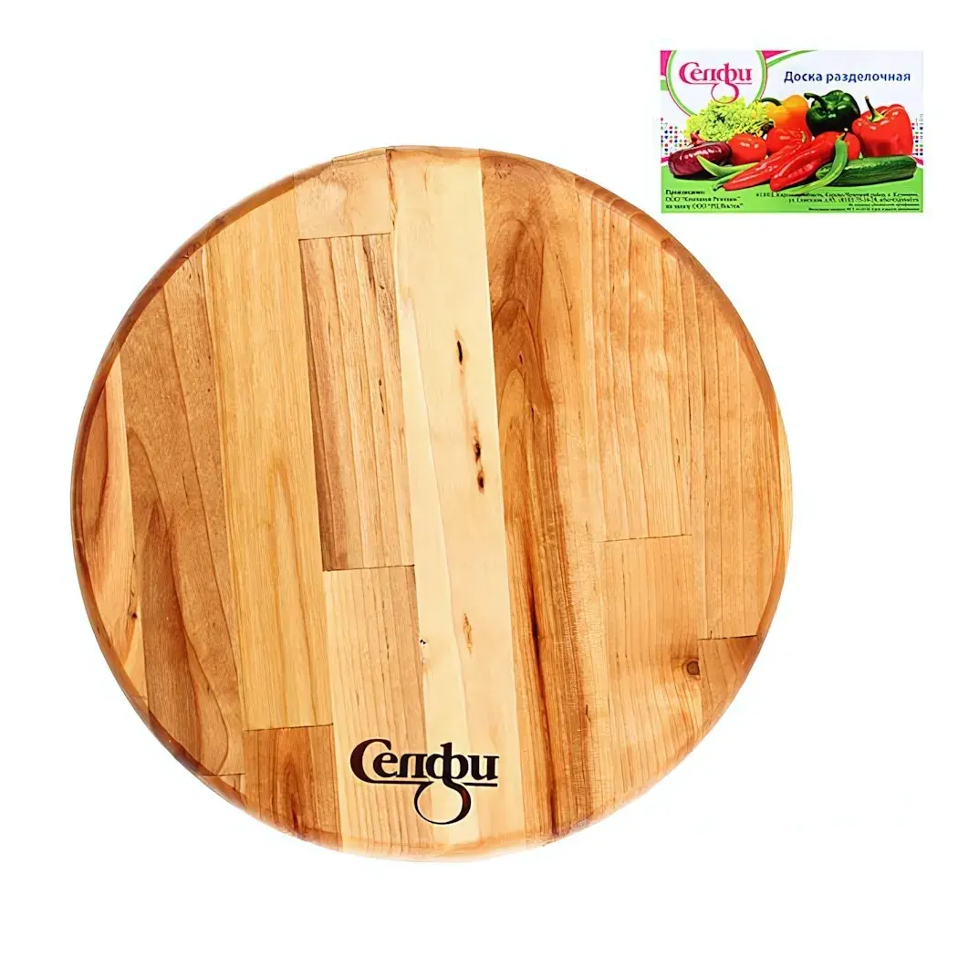 Идеальное сочетание природной эстетики и практичности: круглая деревянная доска сохранит остроту ножей и станет безопасным помощником в приготовлении блюд. Натуральный материал и продуманная конструкция созданы для тех, кто ценит качество на каждой кухне.