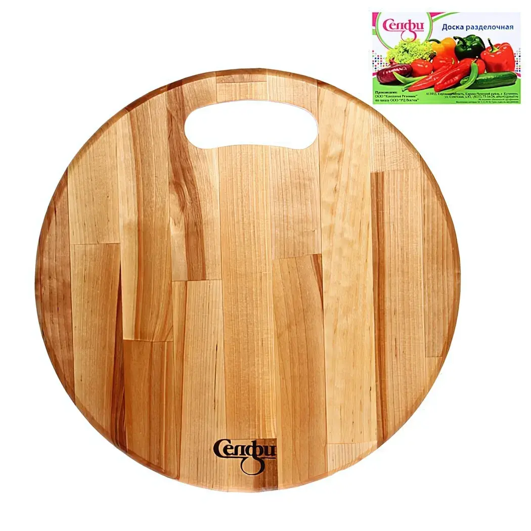 Эта деревянная разделочная доска станет незаменимым помощником на вашей кухне. Она обеспечивает комфорт и удобство в процессе приготовления пищи, позволяя вам сосредоточиться на кулинарных шедеврах. Благодаря своей круглой форме и вырезу для захвата, вы сможете легко перемещать доску и использовать её в любых кулинарных задачах.