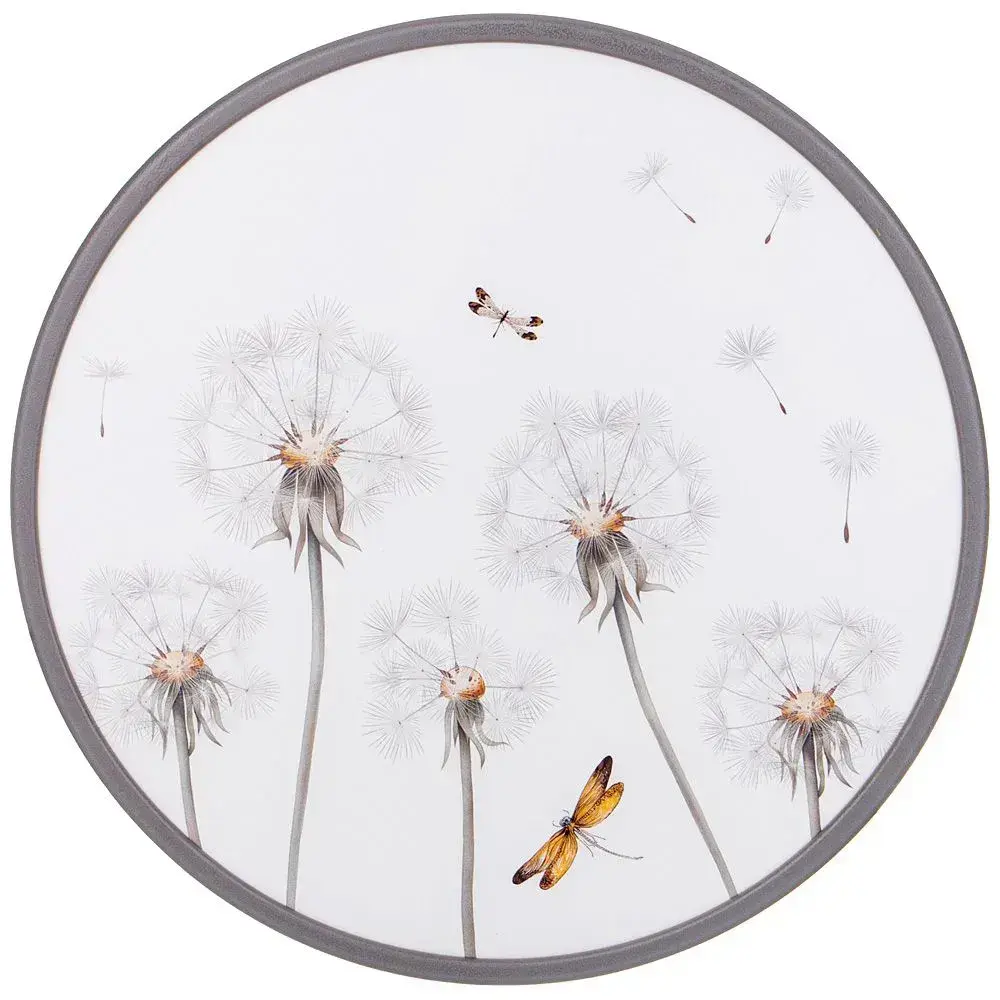 Изготовлена из экологичного пластика, устойчивого к царапинам и деформации. Отгружается один товар в цветовой вариации из коллекции «Одуванчик» (белый фон с элементами серого, коричневого и золотого). Для сохранения внешнего вида рекомендуем ручную мойку без абразивных средств.