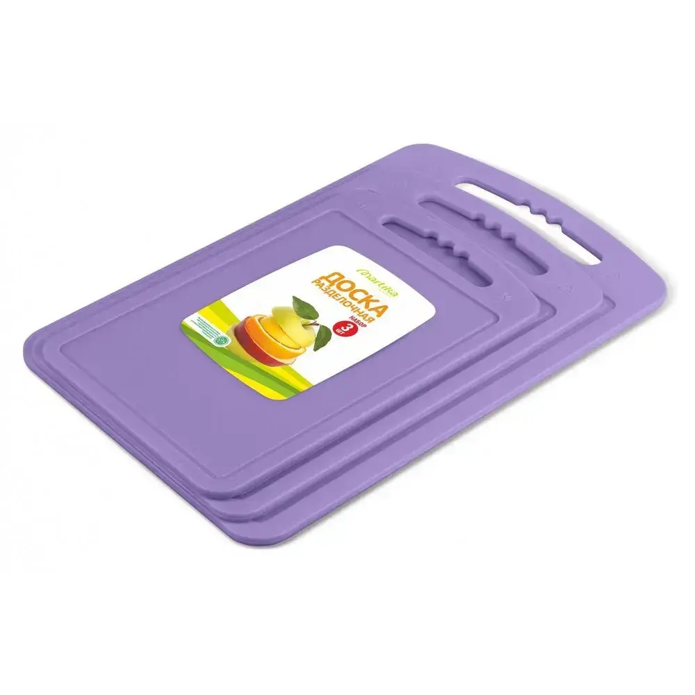 Доска разделочная пластиковая "С55ФИЛ", комплект из 3 шт, фиолетовый, 22 см, антискользящая поверхность