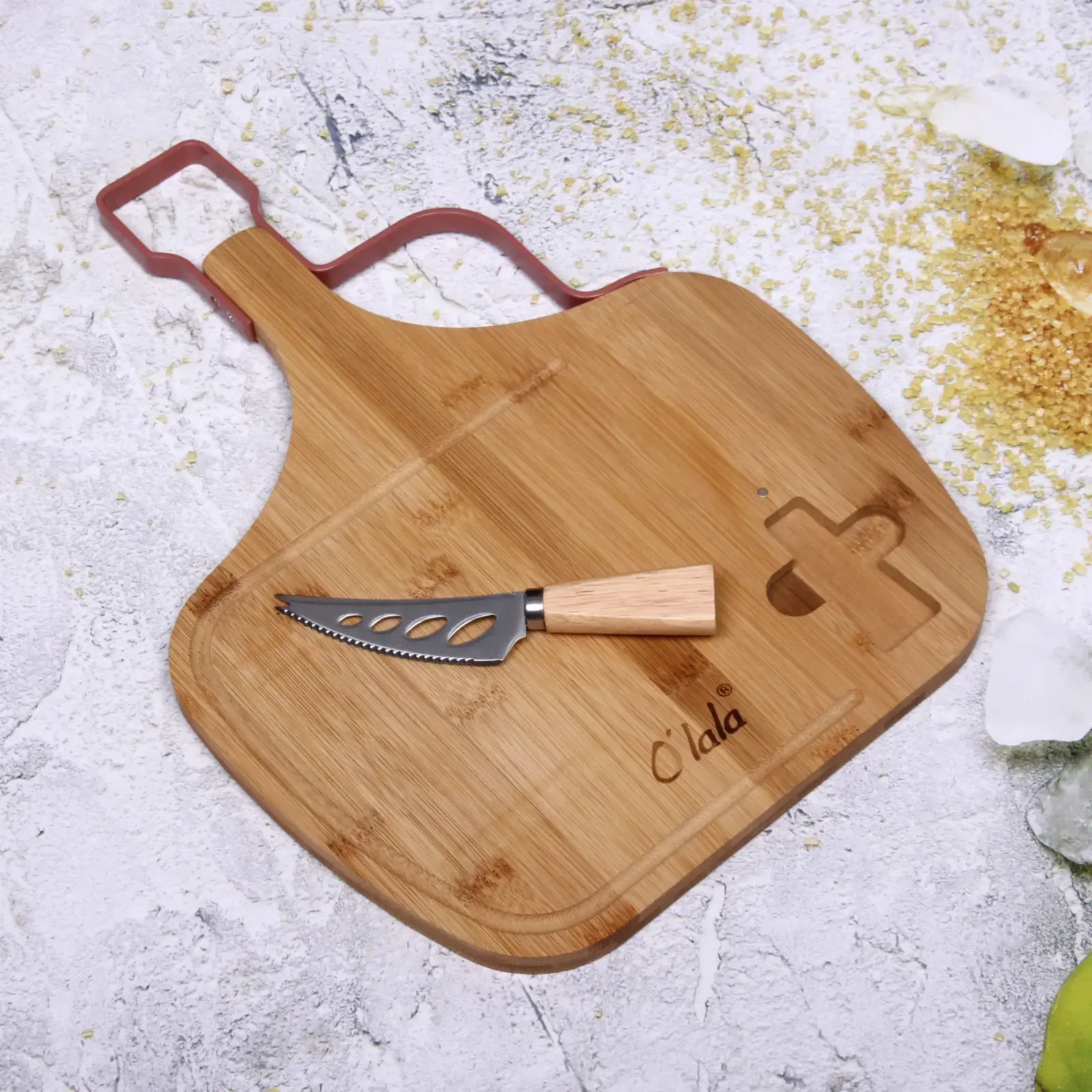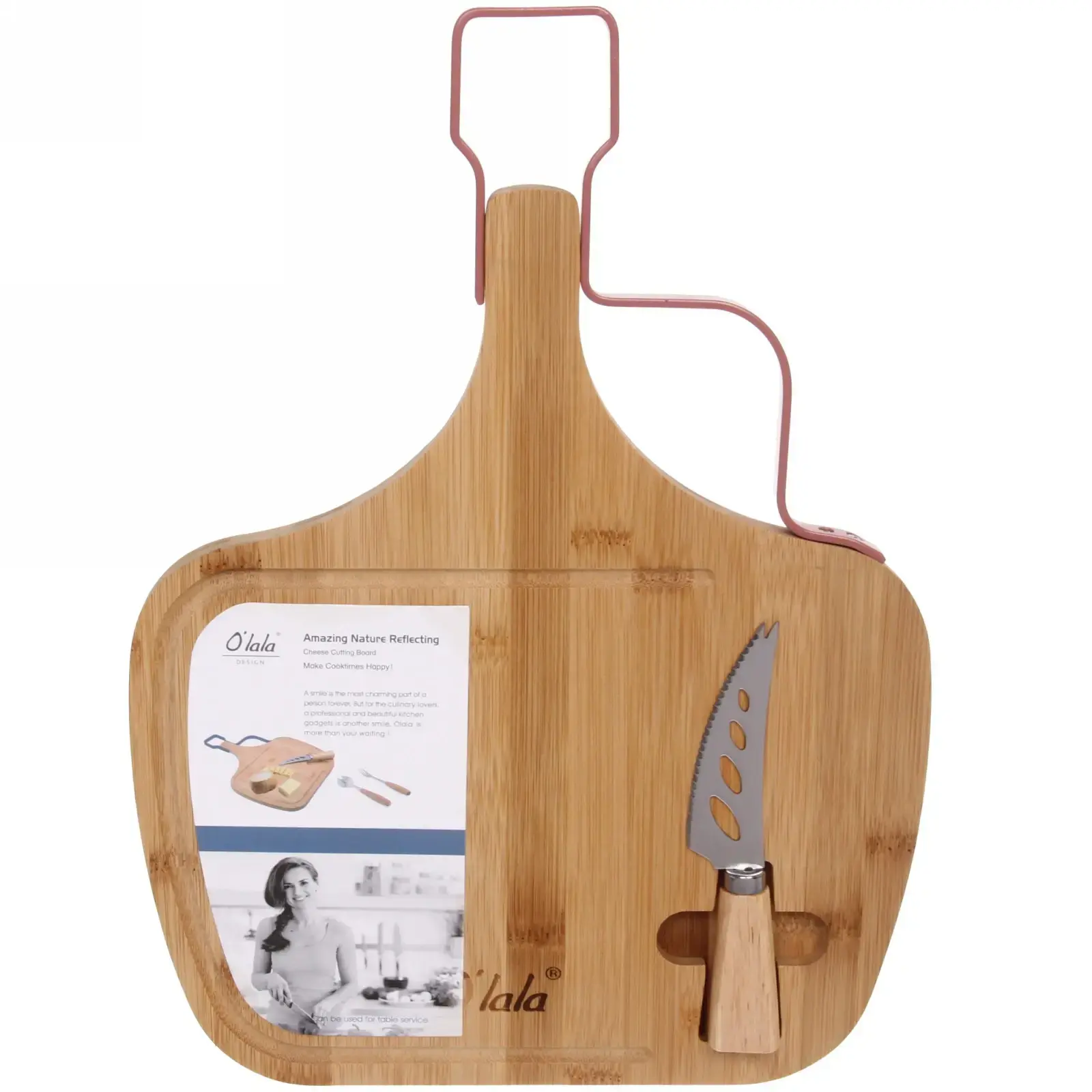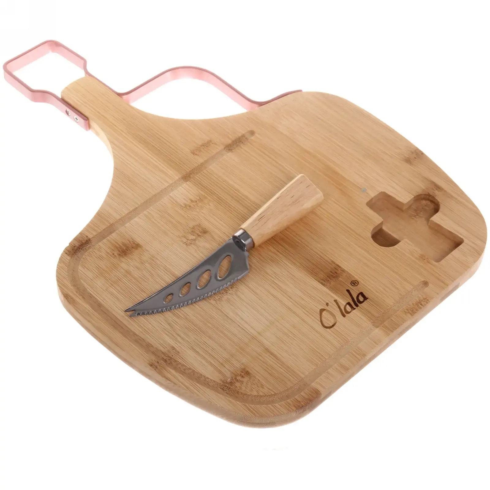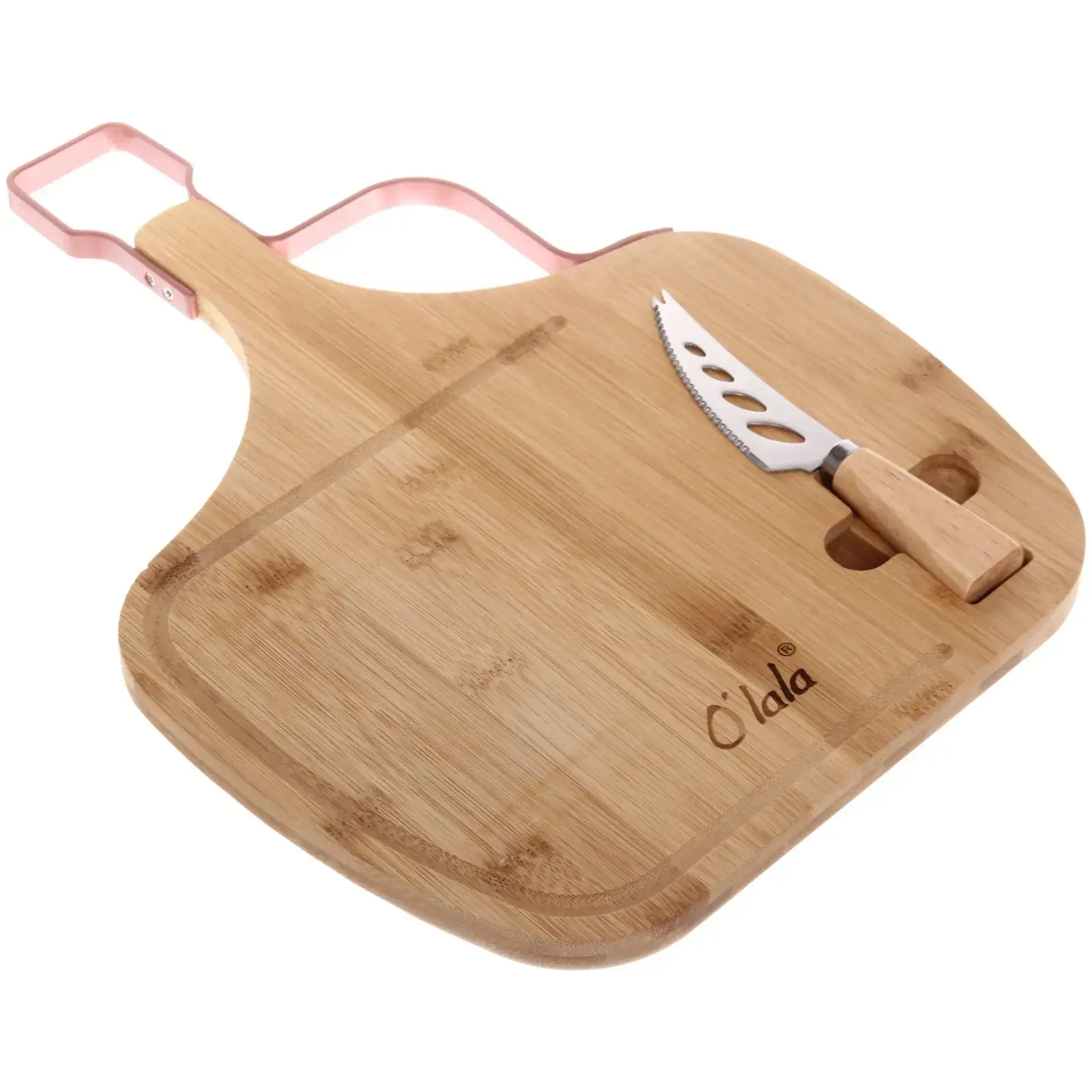 Доска разделочная «O'lala» с ножом для сыра, бамбук, 39х28,5х1,5см, удобная ручка, линии нарезки
