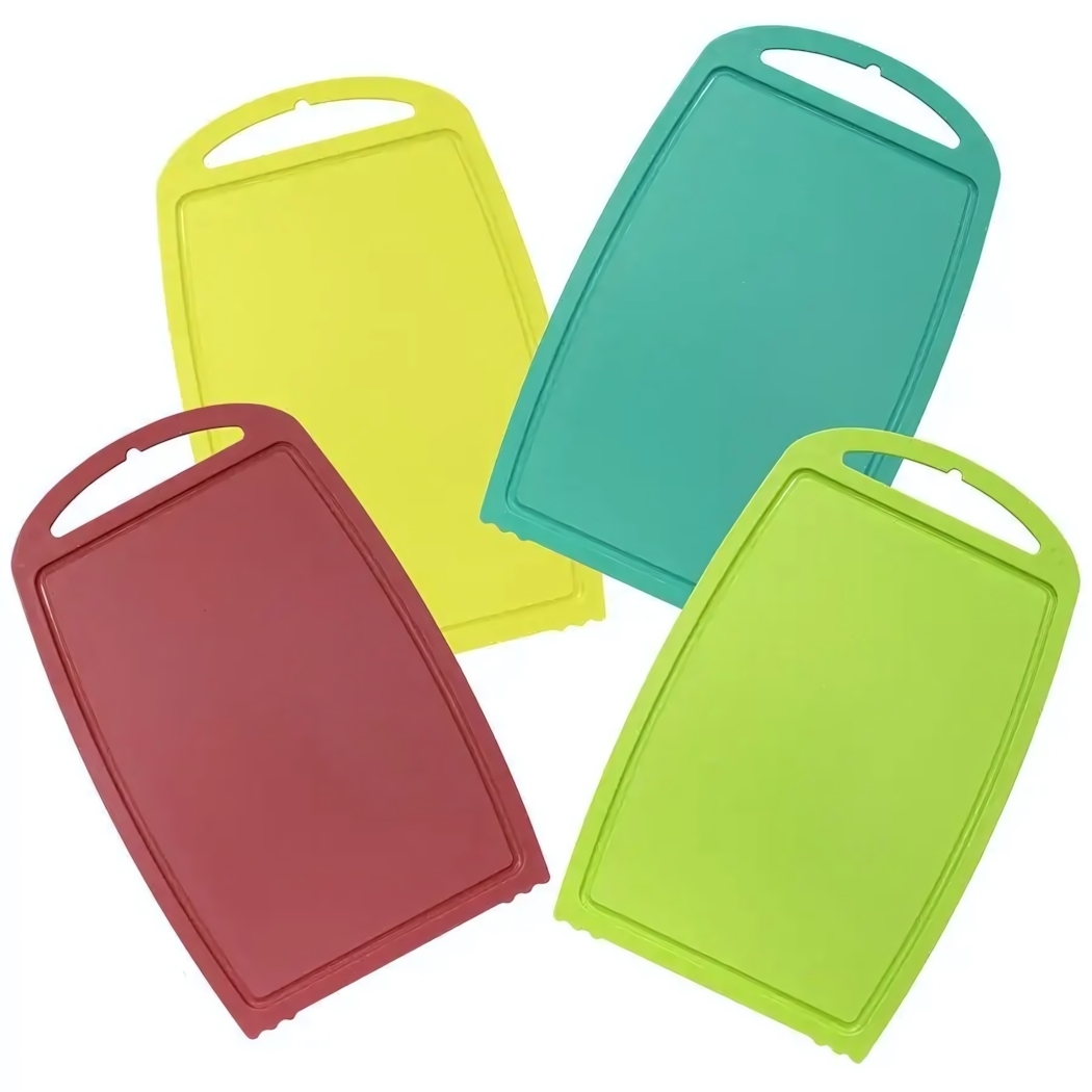 Размер рабочей поверхности: 20x32 см. Толщина изделия: 1.5 см. Материал: ударопрочный пластик, устойчивый к деформациям и царапинам. Цветовая гамма включает 4 варианта: сочный красный, свежий зелёный, солнечный жёлтый и глубокий бирюзовый (отправляется случайным образом из доступного ассортимента).