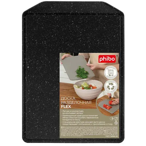 Выбирая доску FLEX, вы получаете не только стильный и современный аксессуар для кухни, но и надежный инструмент, который прослужит вам долго. Четыре ножки на нижней части доски и рельефная поверхность предотвращают скольжение даже на мокром столе, что делает ее идеальной для активного использования. Доска легко чистится и не впитывает запахи, что является важным фактором для любой хозяйки.