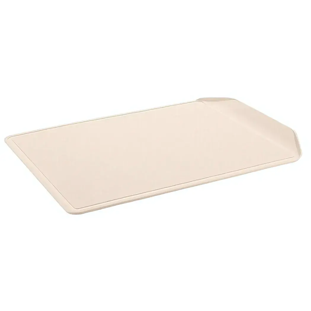 Размеры доски составляют 30х21,5 см, что делает ее идеальной для использования на любой кухне. Бежевый цвет и стильный дизайн позволят ей гармонично вписаться в интерьер. Доска имеет четыре ножки и специальную рельефную поверхность, благодаря чему она не скользит даже на мокром столе, обеспечивая вам максимальную безопасность во время готовки.