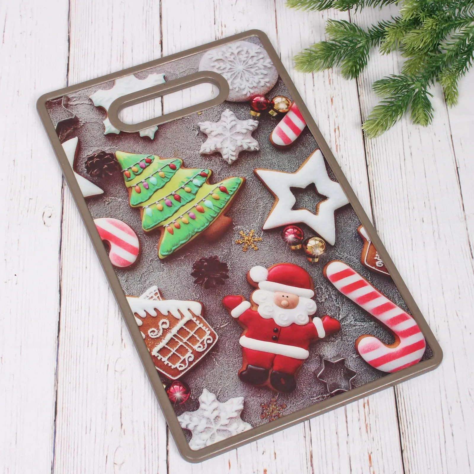 Доска разделочная пластиковая 37х23см «Новогодние пряники», праздничный декор, сервировка