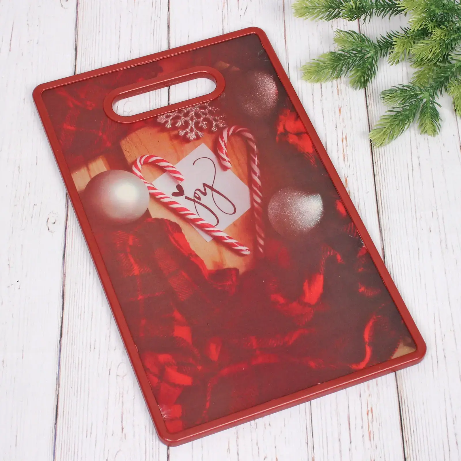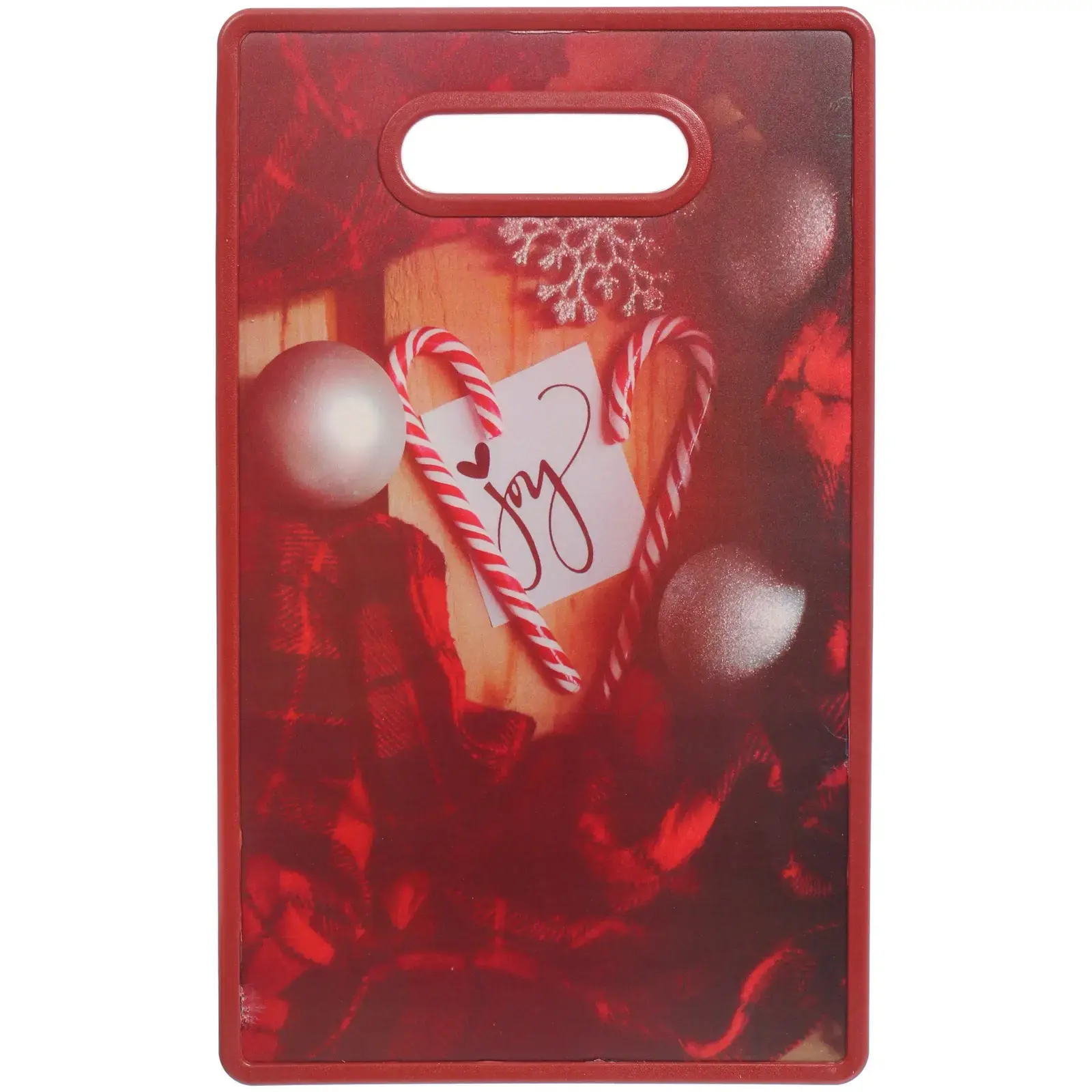 Разделочная доска пластиковая 37х23см «Новогодние символы», праздничный дизайн с надписью Joy, красный