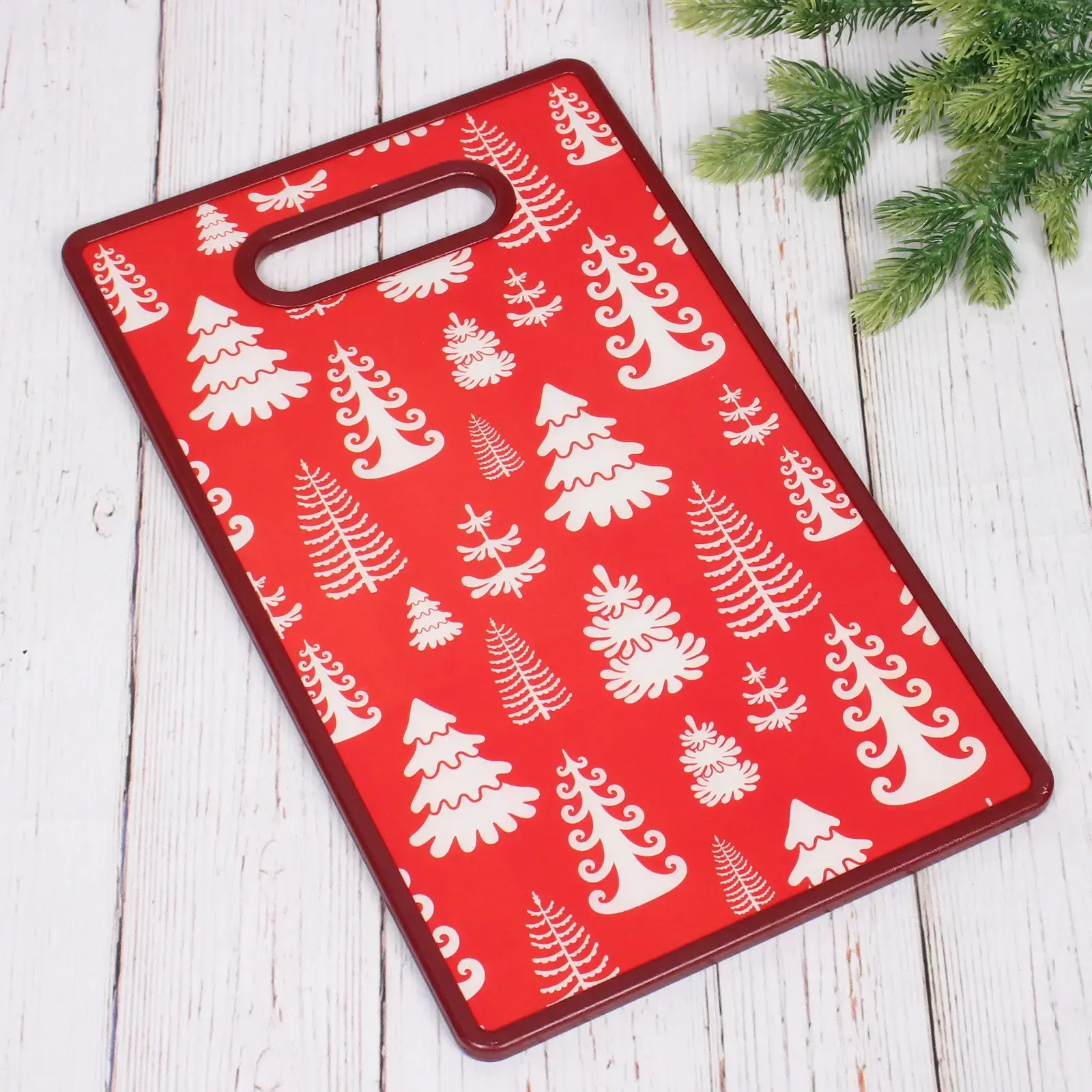 Пластиковая разделочная доска с новогодним дизайном «Ёлочки» станет вашим надежным помощником на кухне. Её размеры 37*23 см идеально подходят как для нарезки продуктов, так и для использования в качестве подставки под терки и слайсеры.