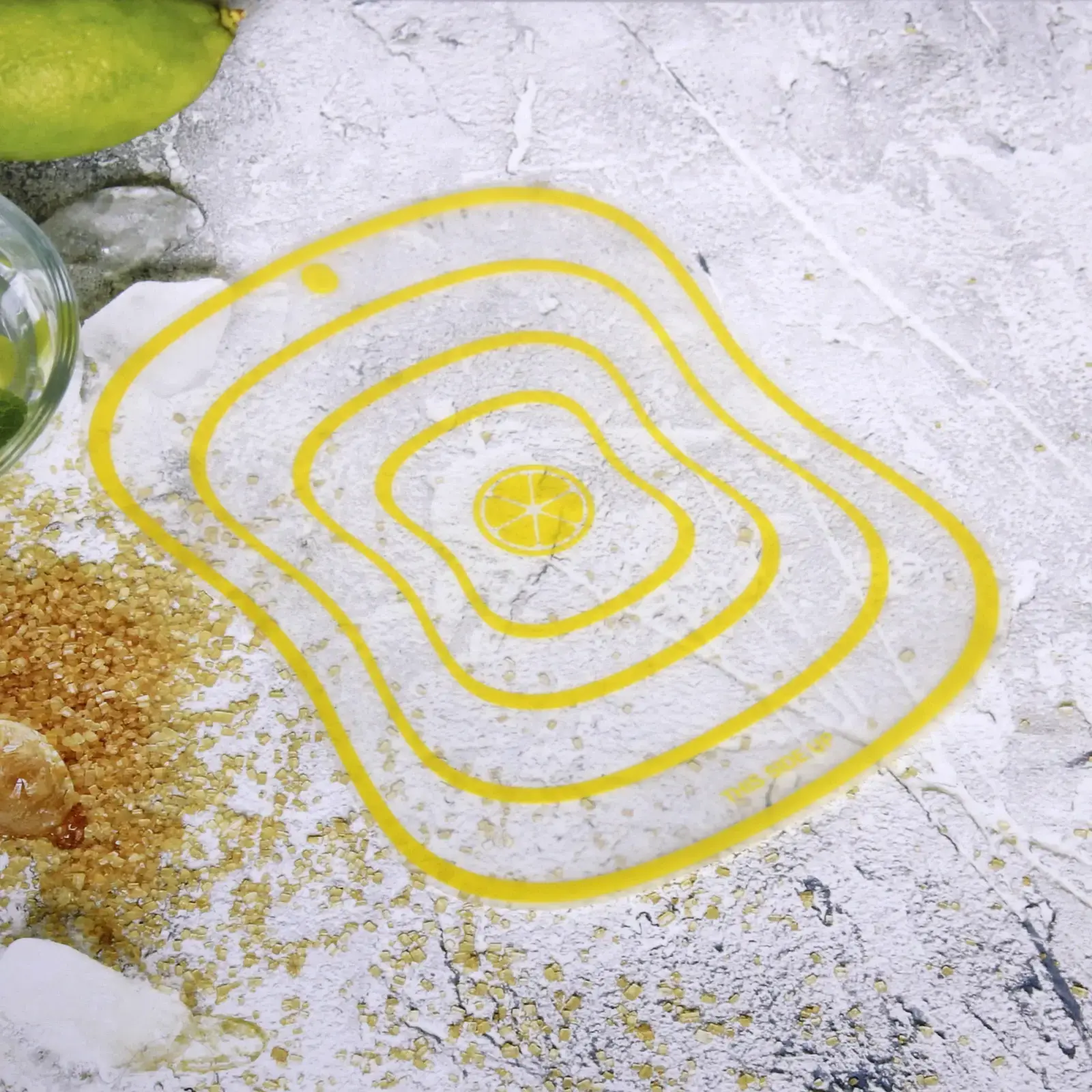 Пластиковый материал обеспечивает долговечность и легкость в уходе. Доска устойчива к царапинам и легко моется, что делает её идеальным выбором для ежедневного использования. Яркий дизайн с изображением фруктов добавляет радости в процесс готовки и делает её стильным элементом вашей кухни.