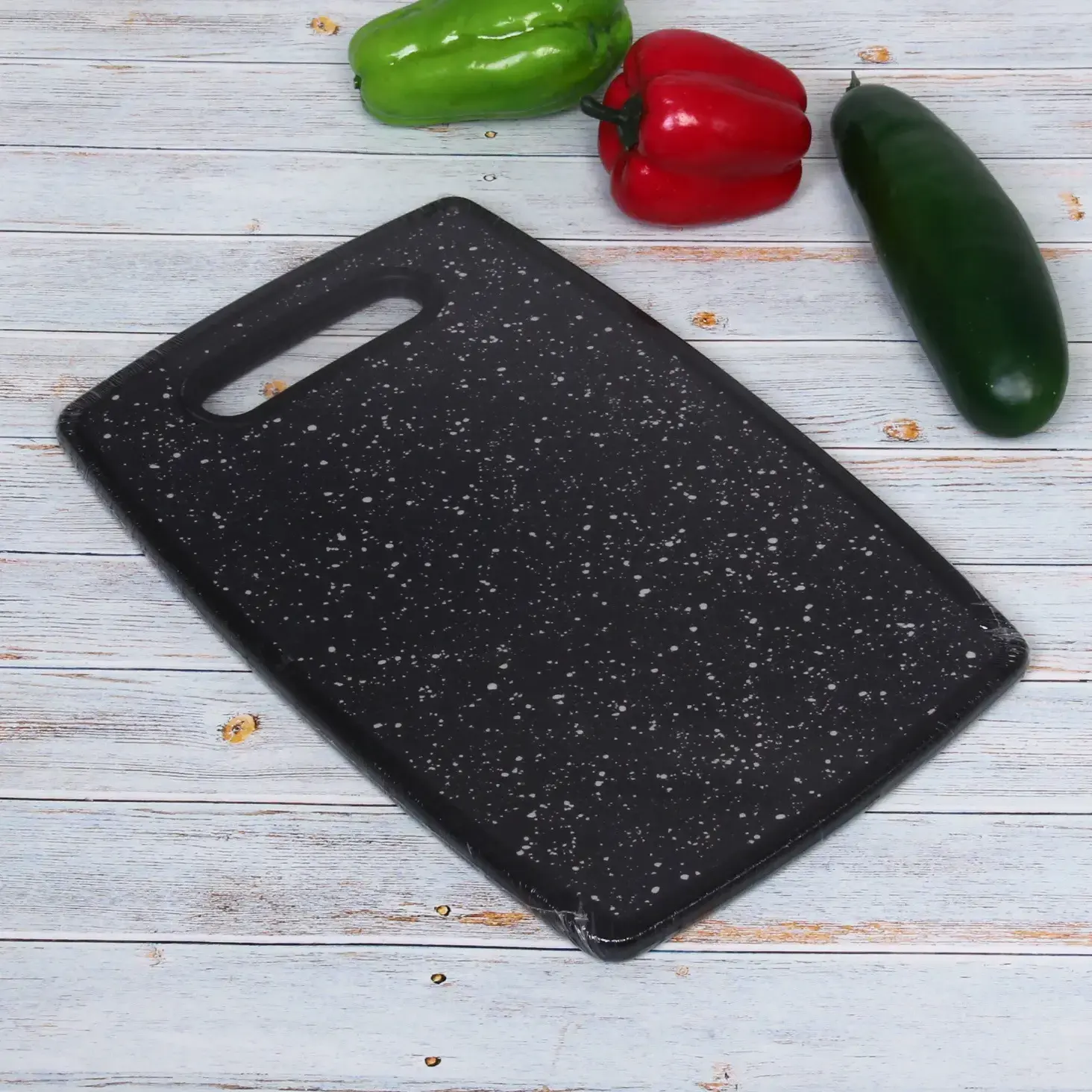 Закругленные края обеспечивают безопасность использования. Особая текстура поверхности предотвращает скольжение продуктов во время нарезки. Доска подходит для всех типов ножей и не тупит их лезвия.