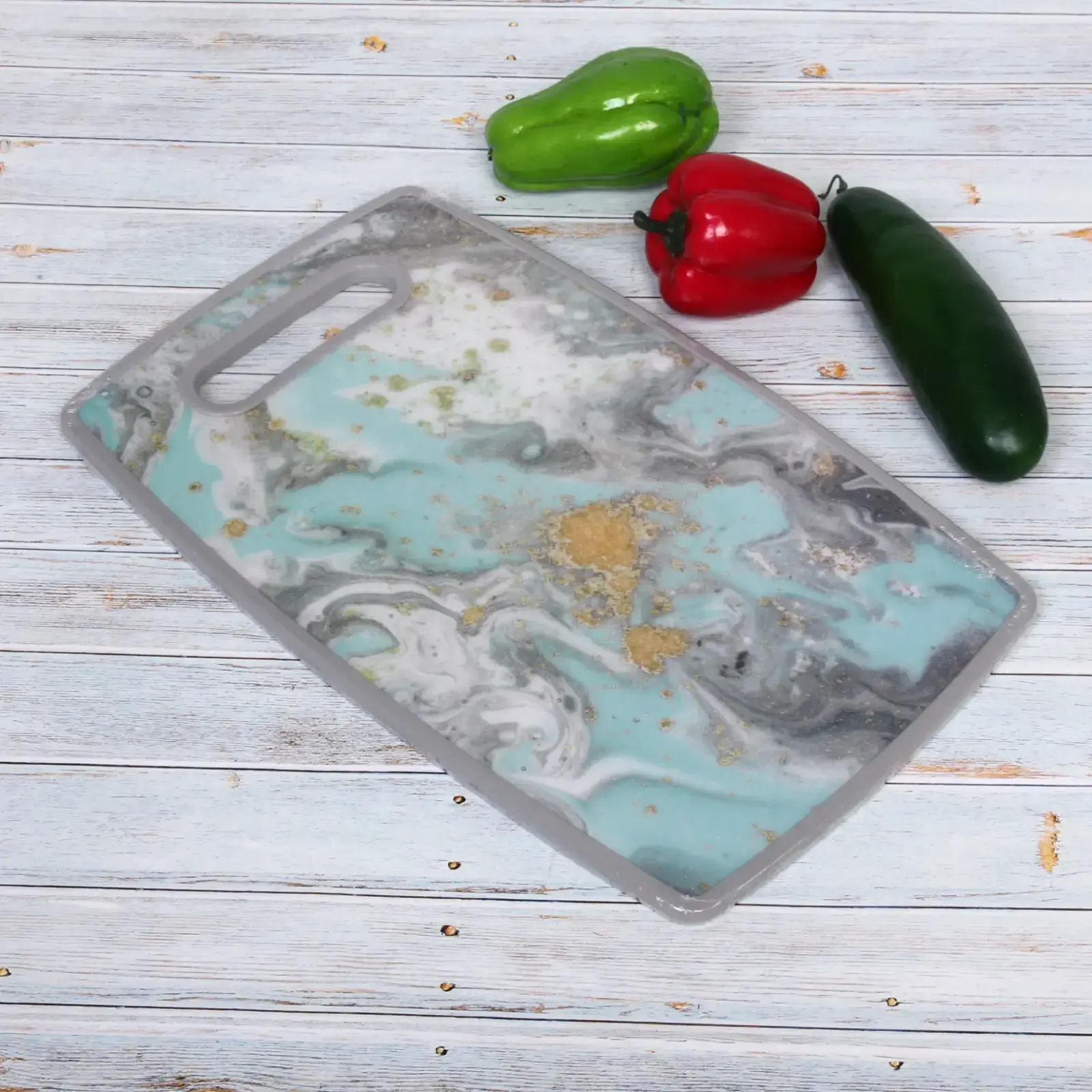 Разделочная доска 'Stone' станет незаменимым помощником на вашей кухне, сочетая в себе современный дизайн и функциональность. Мраморный узор в голубых и золотых тонах украсит любую кухню, а продуманная конструкция обеспечит комфортное использование.
