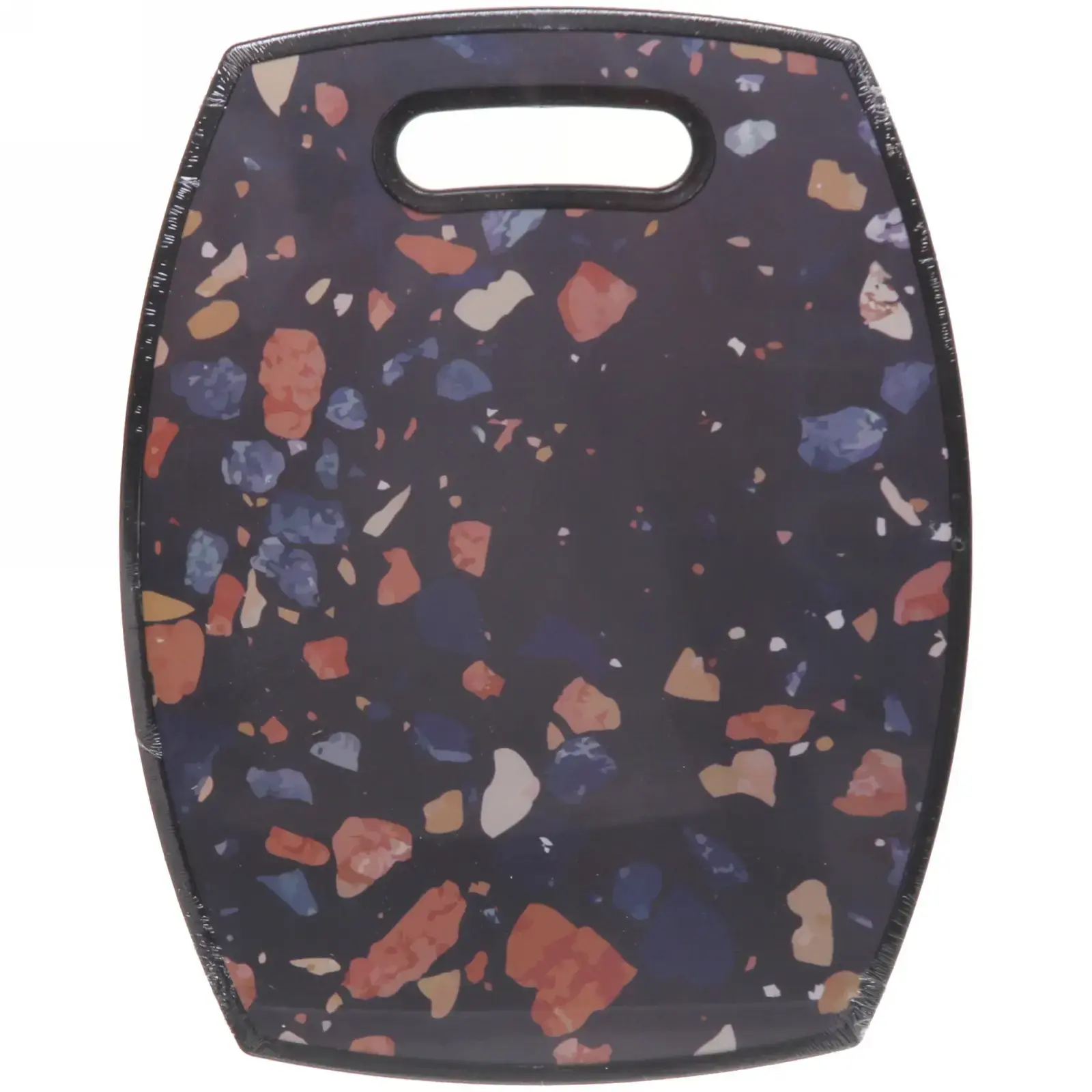 Разделочная доска пластиковая «Stone» 30х38х1см, овальная с ручкой, дизайн «каменная крошка»