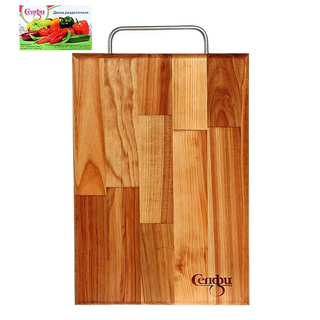 Размеры доски составляют 34х22 см, а толщина — 1,8 см, что делает ее достаточно прочной для любых задач. Доска выполнена из натурального дерева, что гарантирует ее долговечность и надежность. Металлическая ручка добавляет удобства и стиля, а разнообразие оттенков дерева делает каждую доску уникальной.