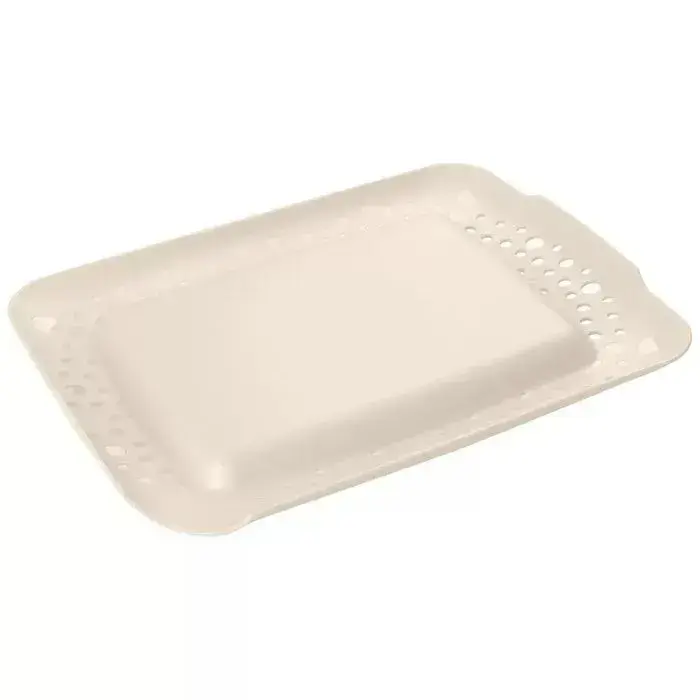 Размер доски — 350x265x30 мм, материал — прочный пластик, цвет — бежевый. Это решение для тех, кто любит порядок, ценит практичность и хочет сделать кухонный процесс приятным и быстрым.