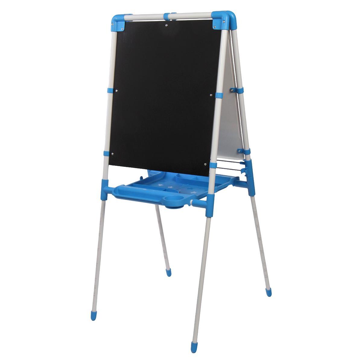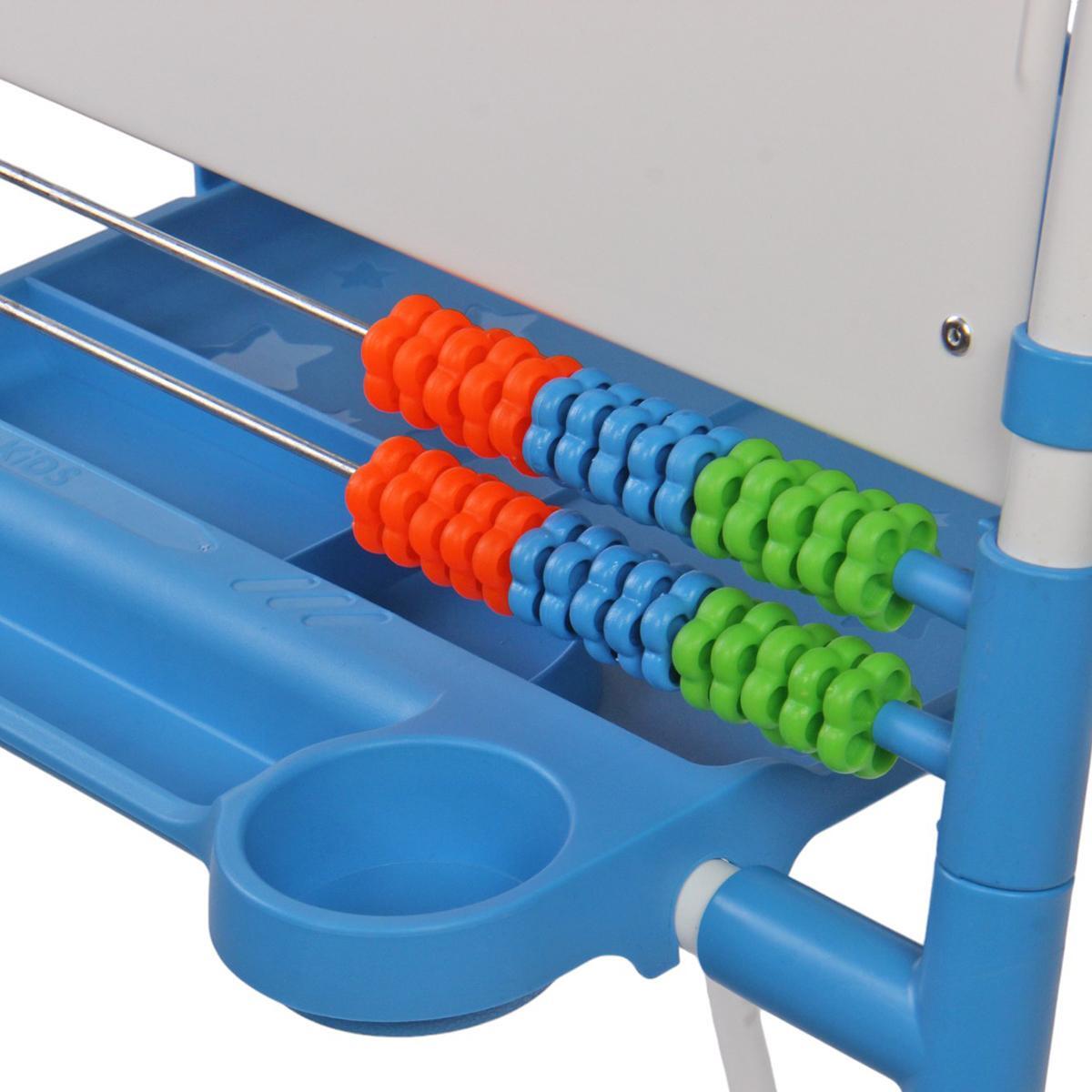 Мольберт изготовлен из качественных и безопасных материалов: пластика и металла. Голубой цвет и привлекательный дизайн обязательно понравятся вашему ребенку. Подходит для детей от 3 лет.