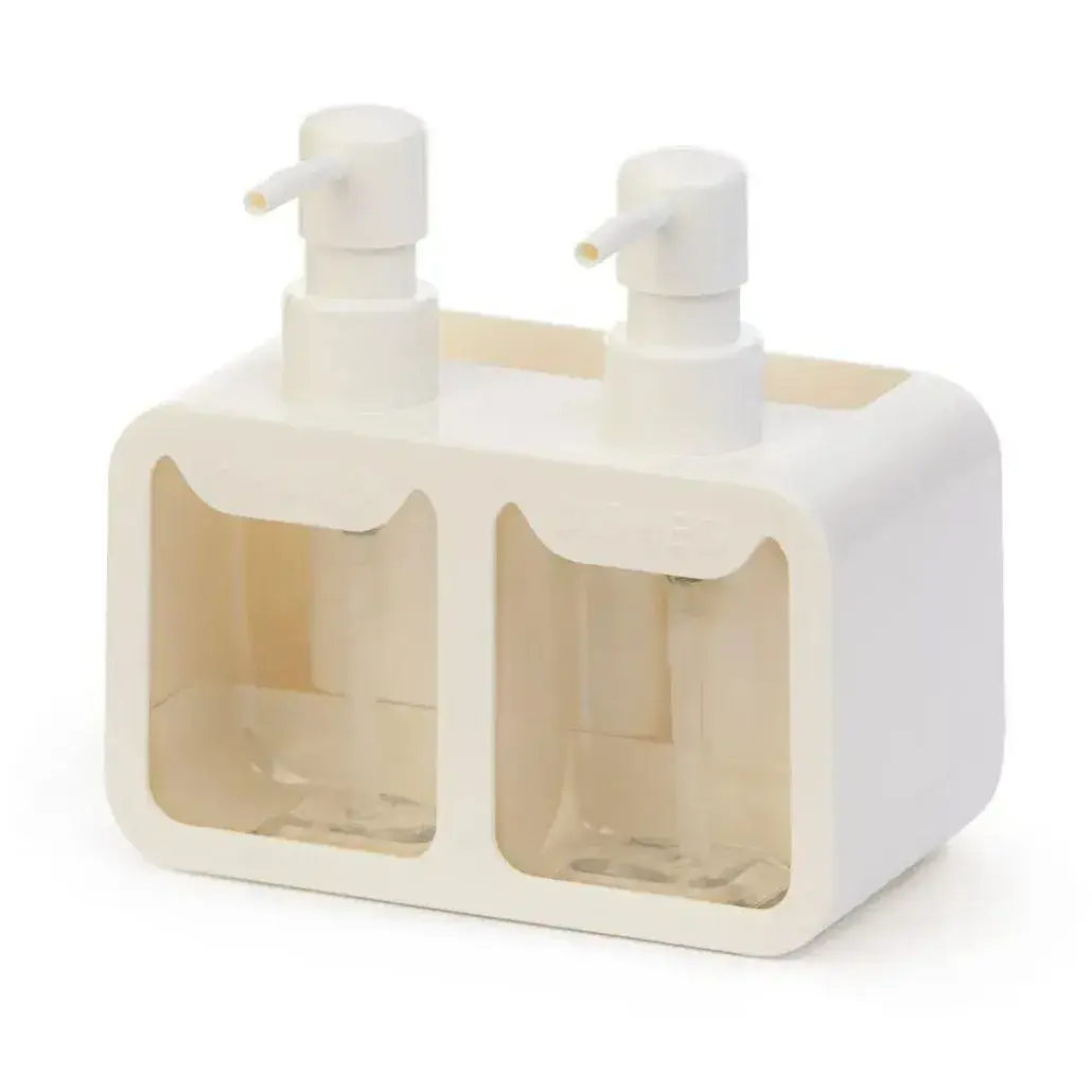 Компактный пластиковый дозатор создан для организации пространства на кухне и в ванной. Два отдельных отсека позволяют одновременно использовать разные моющие средства, сохраняя порядок на рабочей поверхности.