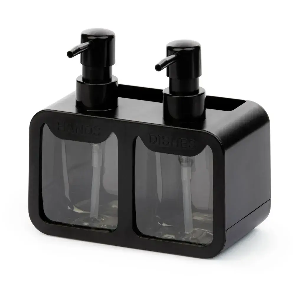 Изделие изготовлено из прочного ABS-пластика, устойчивого к бытовой химии. Четкие надписи «HANDS» и «DISHES» помогают быстро ориентироваться при использовании. Подходит для гелей, жидкого мыла и моющих средств любой вязкости.