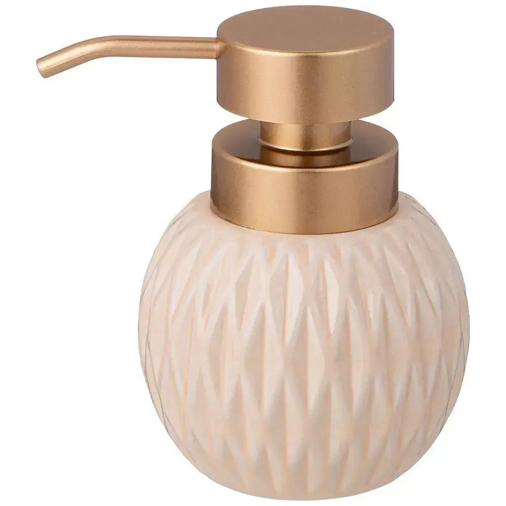 Дозатор для мыла Lefard, 300 мл, бежевый с золотистым насосом, рельефная текстура