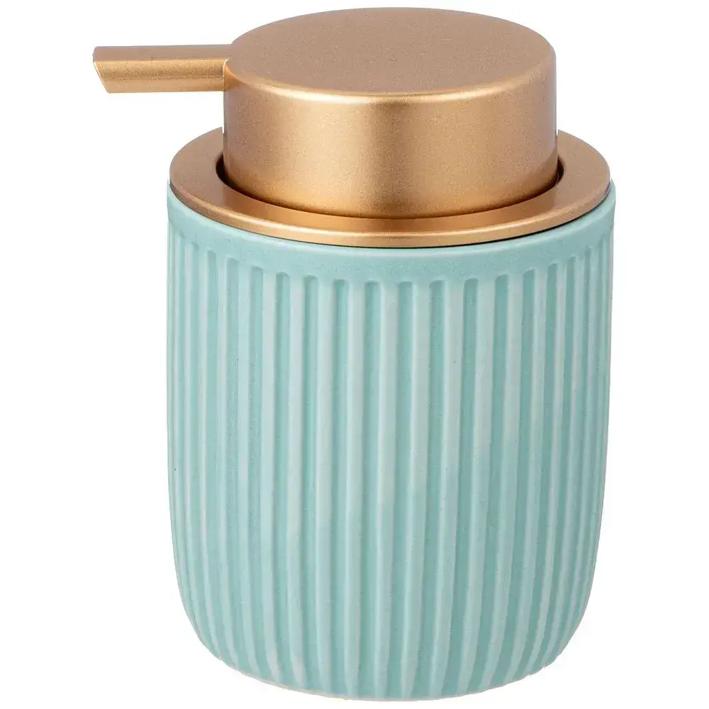 Дозатор для мыла 300 мл, цвет бирюза, стильный дизайн с золотой крышкой