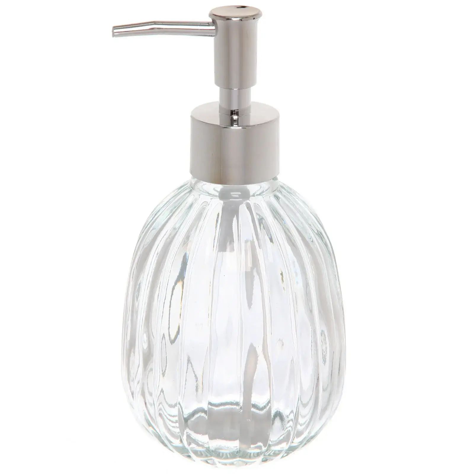 Стеклянный диспенсер с металлическим насосом сочетает практичность и элегантный дизайн, создавая гармонию в интерьере ванной или кухни. Идеальное решение для контроля расхода средств и поддержания чистоты поверхностей.