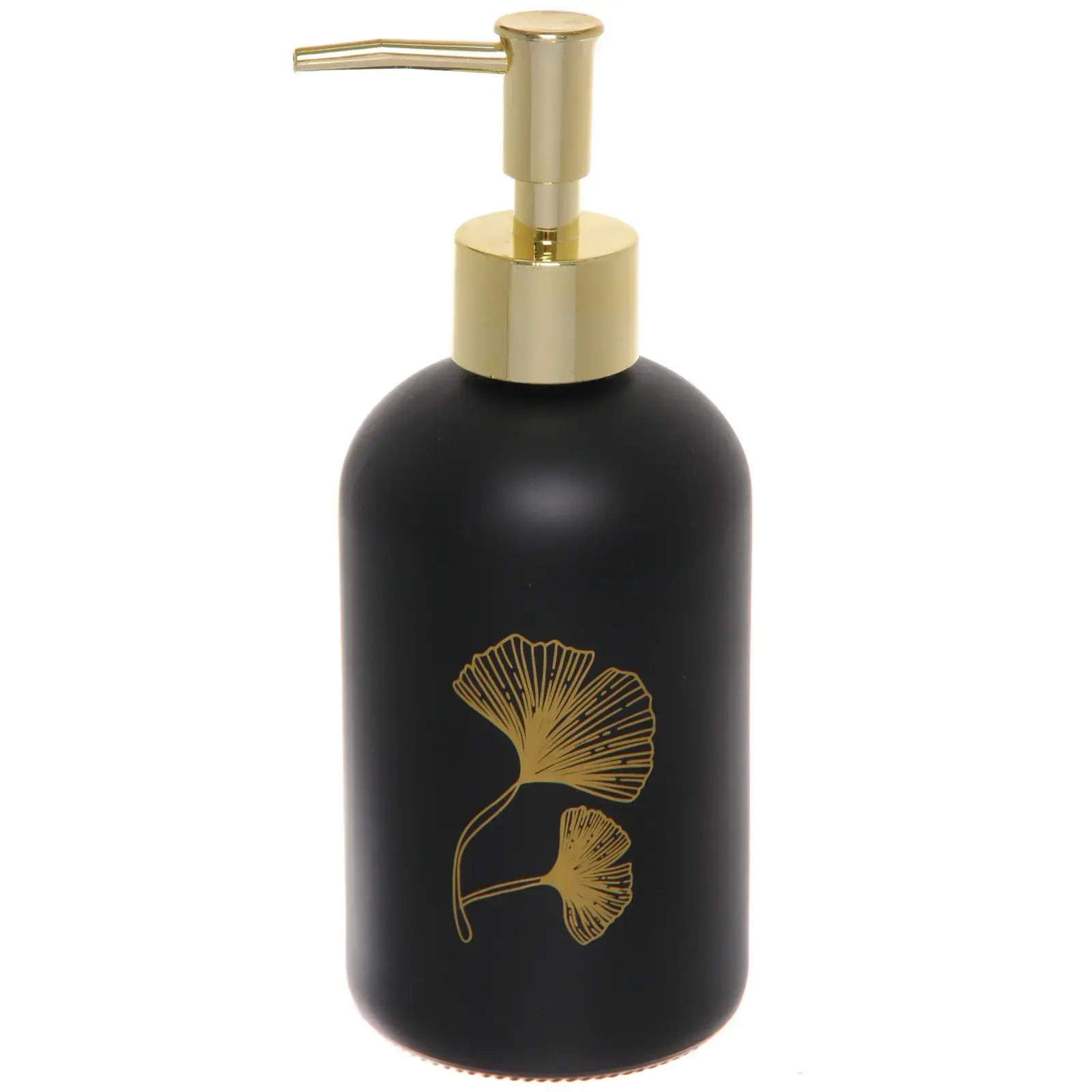 Дозатор для жидкого мыла 380 мл, черный с золотым декором, пластик и стекло, LE002