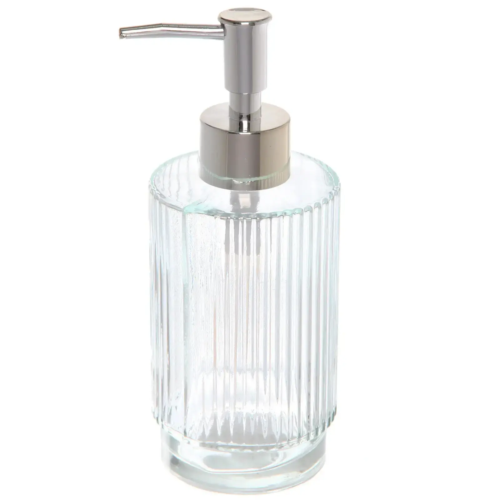Современный дозатор для жидкого мыла станет не только практичным решением для вашей ванной комнаты, но и стильным акцентом интерьера. Прозрачный стеклянный корпус с рифленой текстурой выглядит элегантно и позволяет всегда контролировать уровень содержимого.