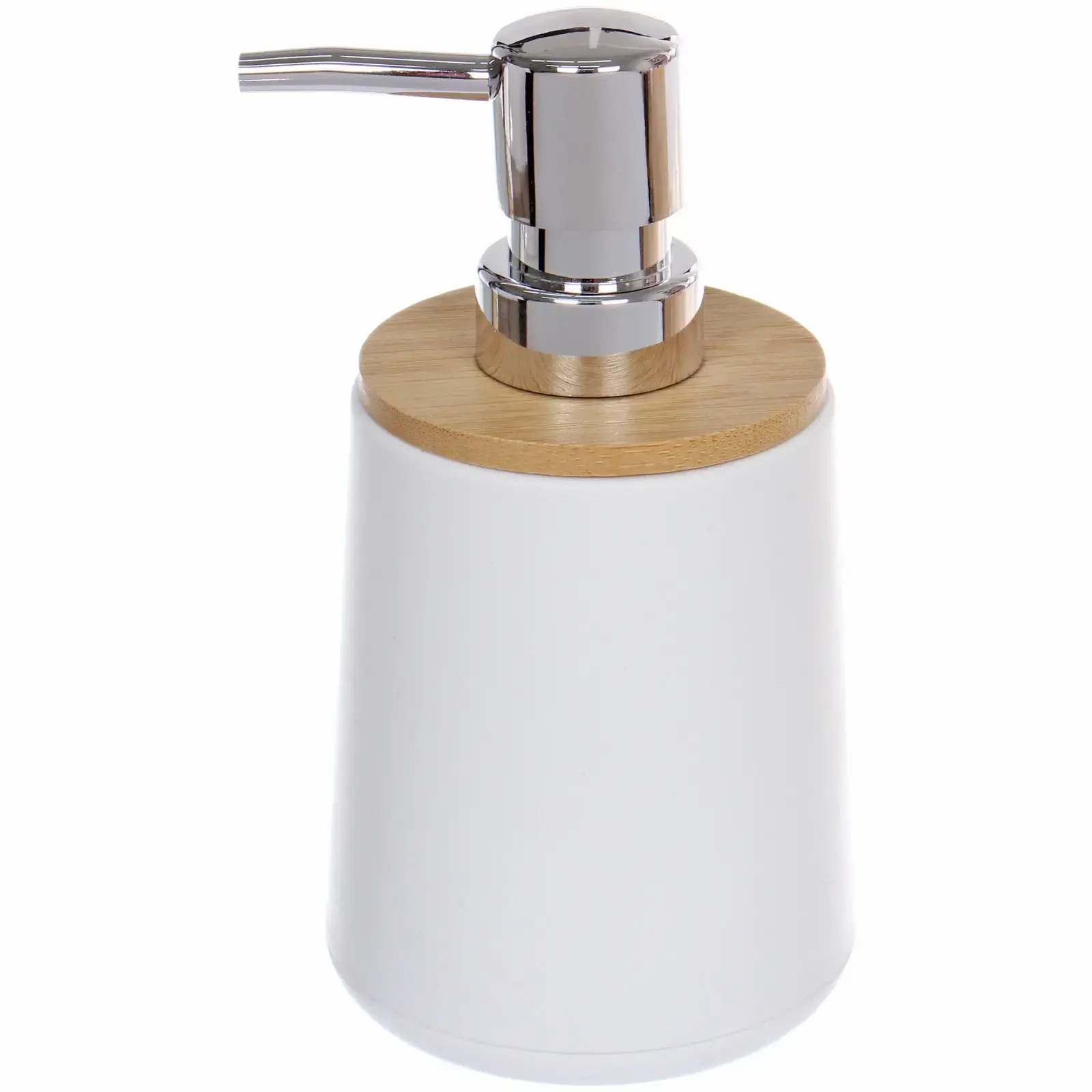 Дозатор для жидкого мыла 350 мл с бамбуковой крышкой и металлическим насосом, белый, универсальный