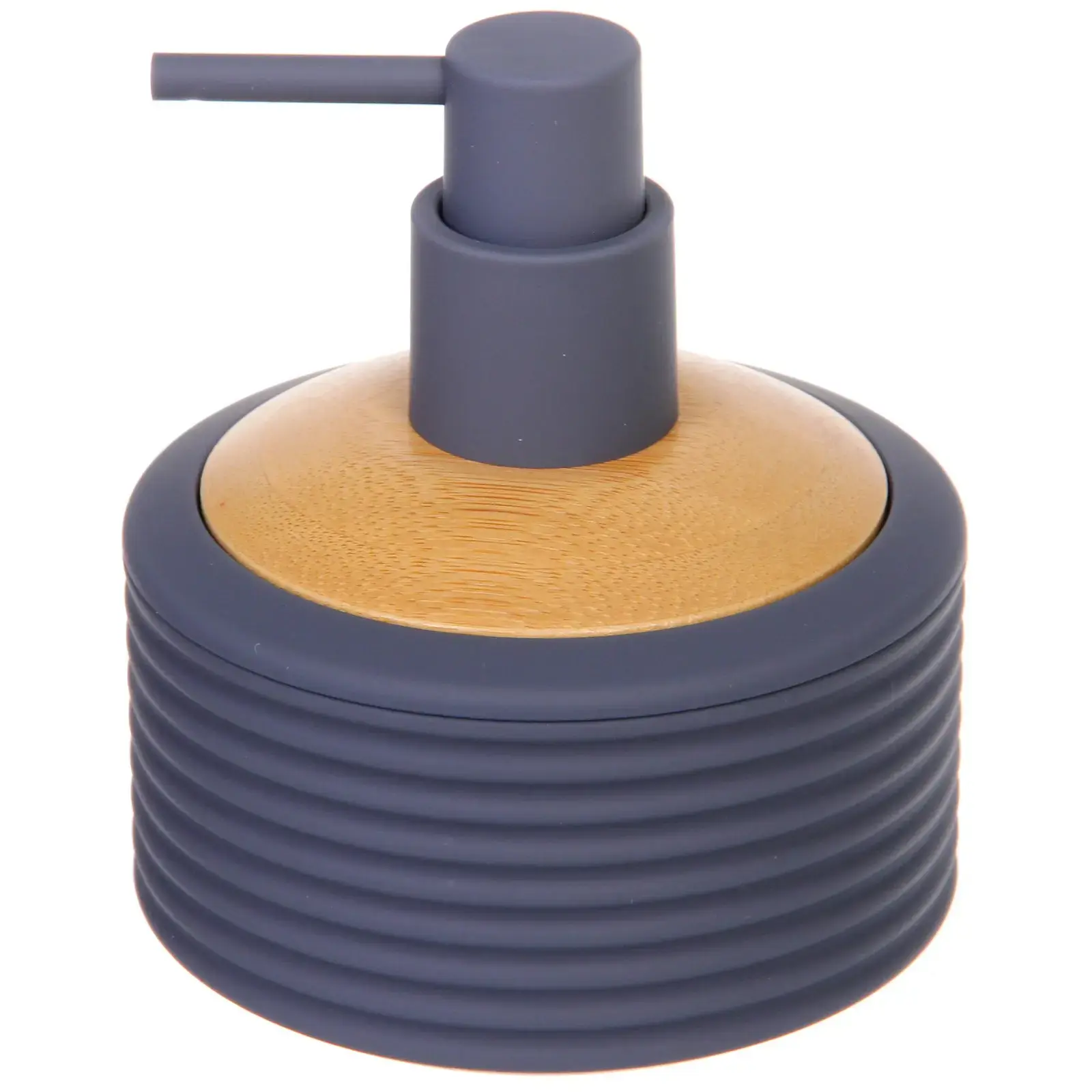 Дозатор для жидкого мыла 300 мл серый с помповым механизмом и вставкой из бамбука