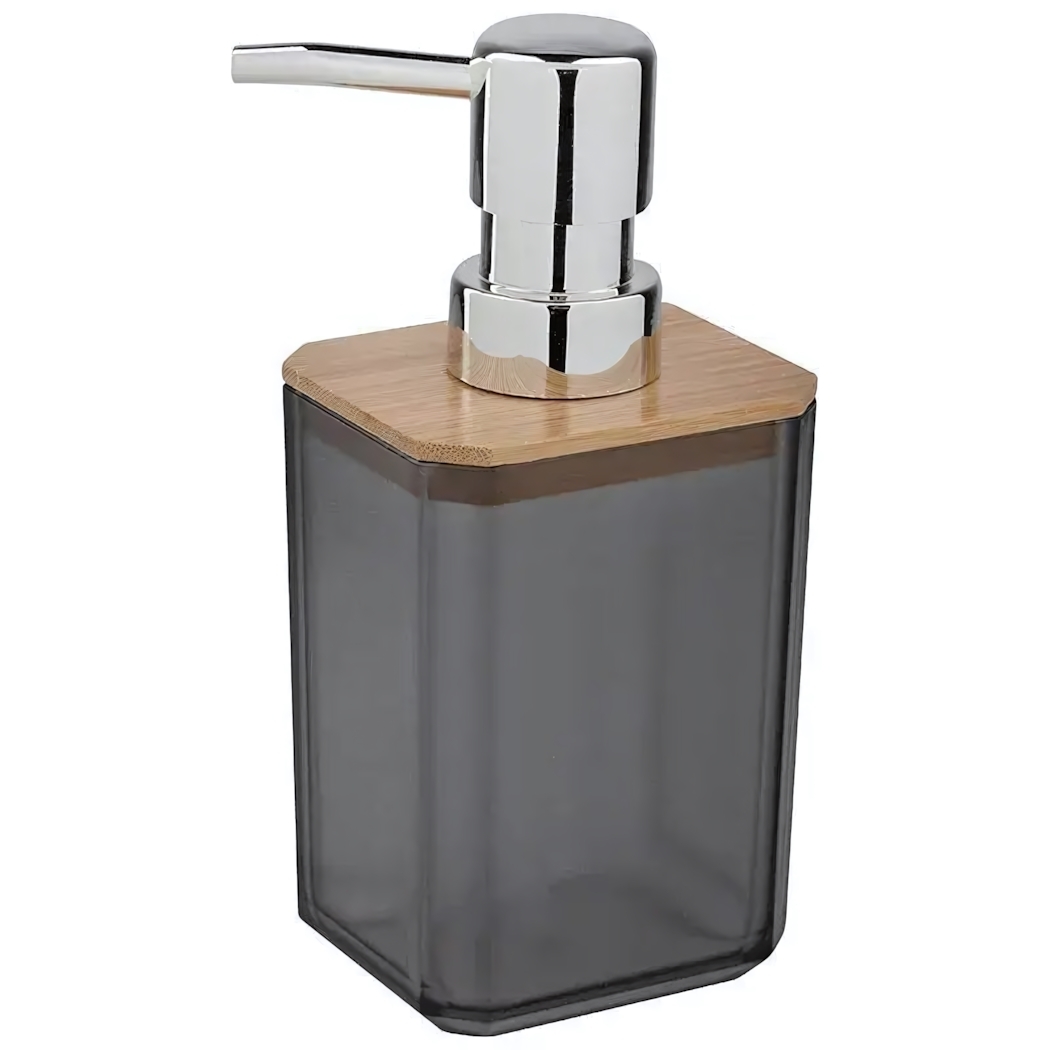Дозатор для жидкого мыла с металлическим дозатором, пластик и имитация дерева, серый/коричневый
