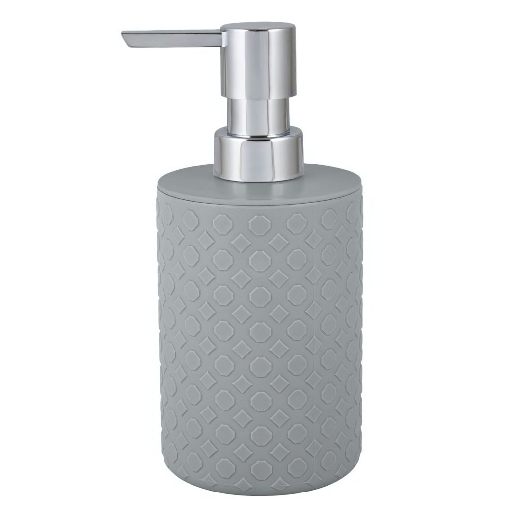 Корпус выполнен из безопасного пластика и рассчитан на эксплуатацию в помещениях с повышенной влажностью. Матовая поверхность в оттенке серый шторм гармонирует с хромированной помпой, создавая аккуратный и современный акцент. Дозатор легко наполняется и очищается, что делает его удобным вариантом для ежедневного использования всей семьей.