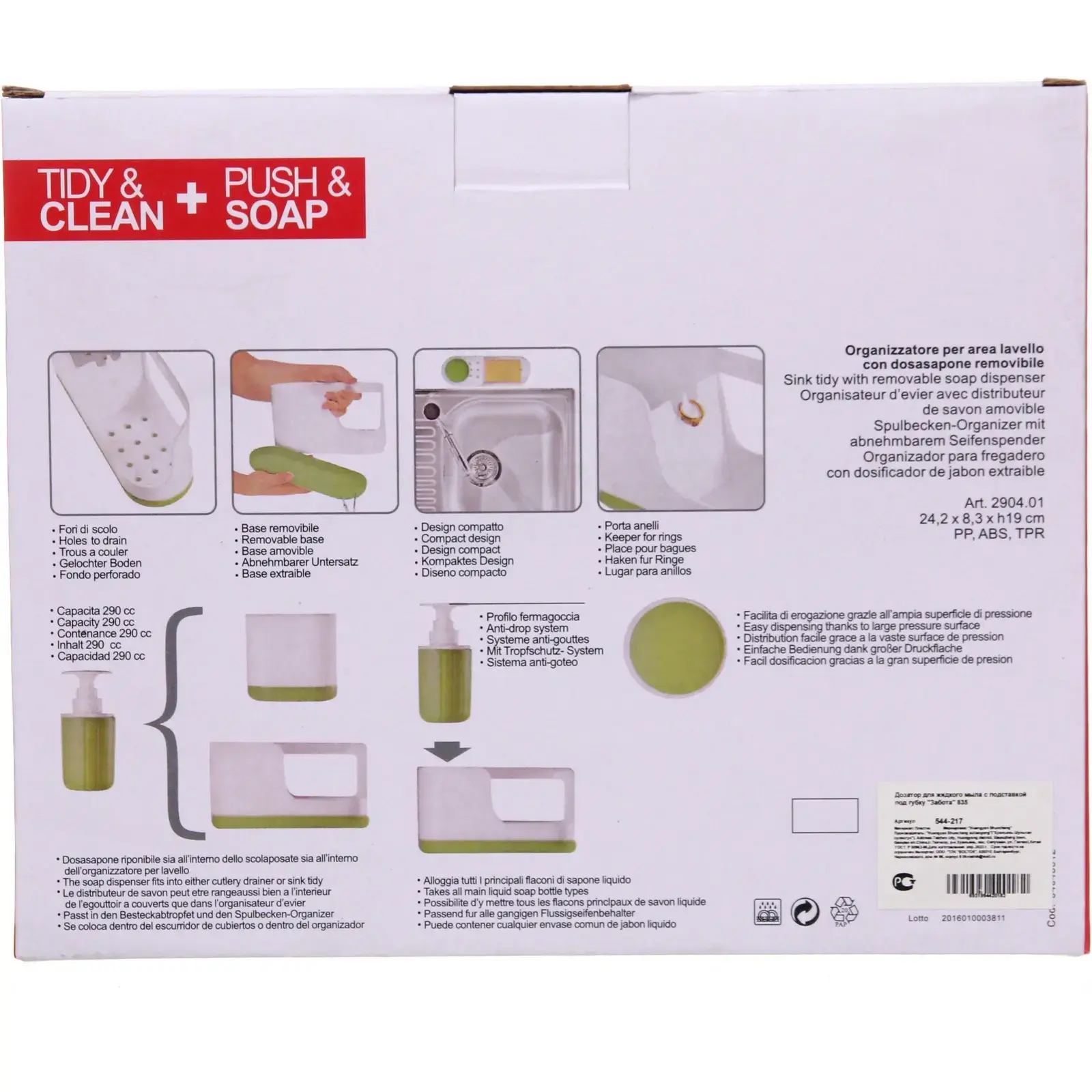 Не упустите возможность сделать вашу кухню или ванную комнату более организованной и стильной с помощью дозатора для жидкого мыла с подставкой под губку «Забота»!