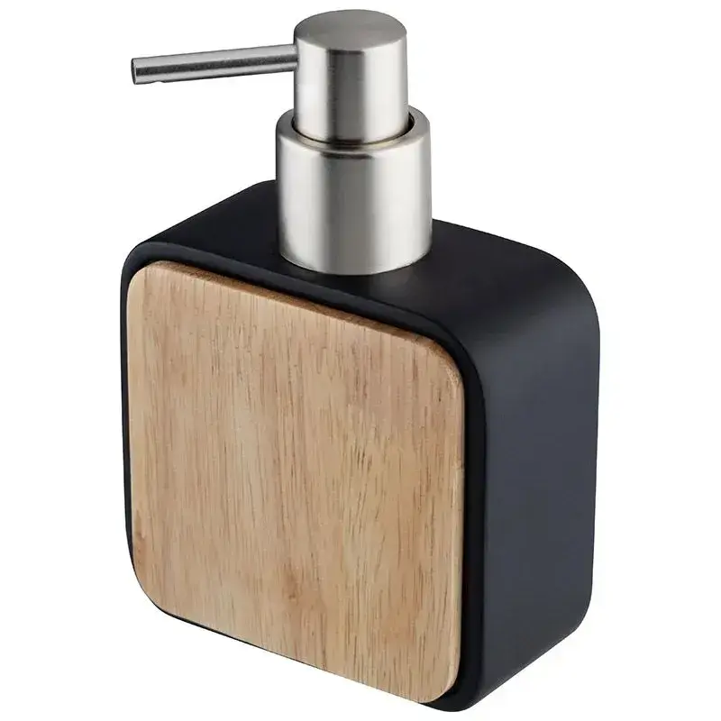 Дозатор для жидкого мыла «Sydney» с металлическим насосом, пластик и дерево, цвет черный/светлое дерево