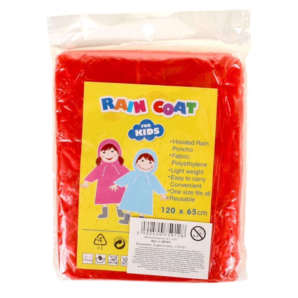 Дождевик детский многоразовый, 120х65 см, полиэтилен, легкий и компактный