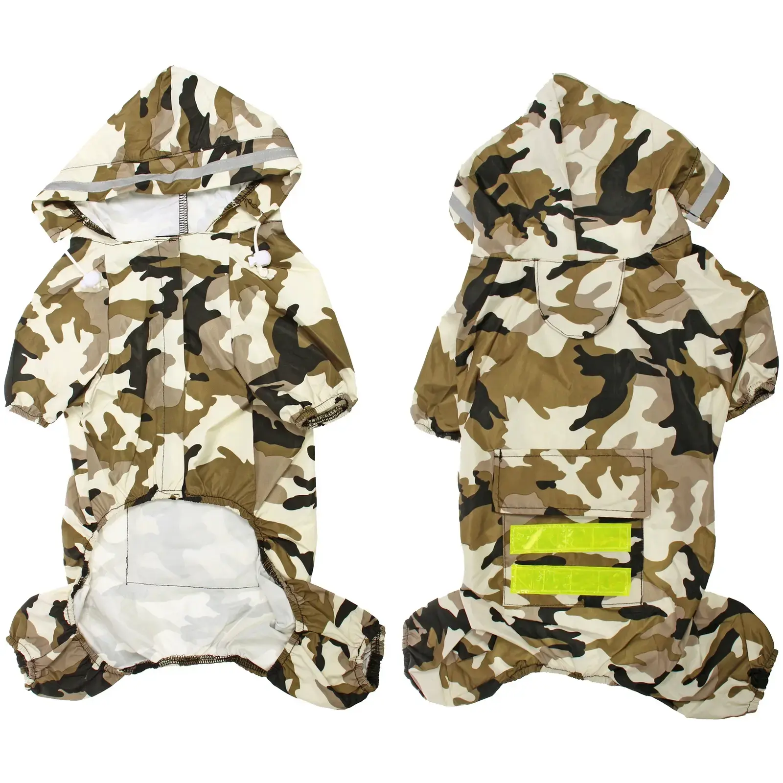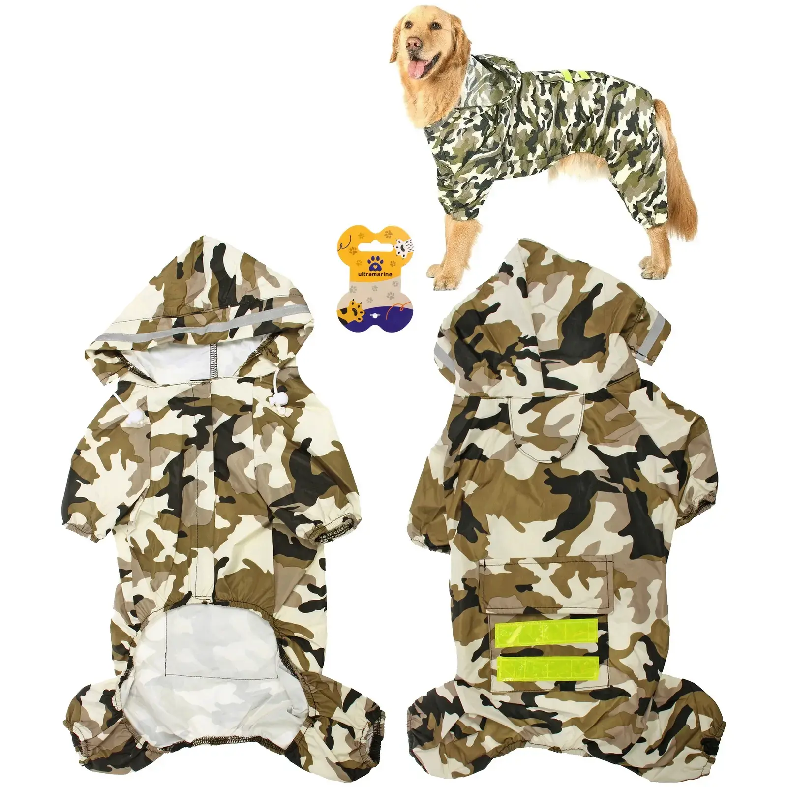 Дождевик имеет капюшон и длинные рукава с манжетами, что обеспечивает надежную защиту от непогоды. Он легко надевается и снимается, что делает его удобным в использовании. Подходит для крупных собак, таких как золотистые ретриверы, лабрадоры и другие породы с аналогичными размерами.
