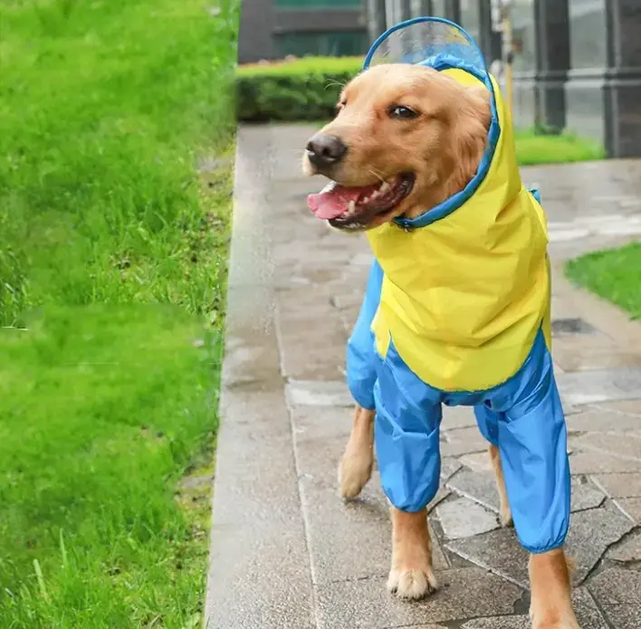 Дождевик предназначен для крупных пород собак и имеет размер 5XL, что делает его идеальным выбором для таких собак, как золотистые ретриверы или лабрадоры. Он легко надевается и снимается благодаря удобной застёжке спереди и специальным прорезям для хвоста. Капюшон обеспечивает дополнительную защиту, а свободный крой не стесняет движений, позволяя вашему питомцу активно гулять.