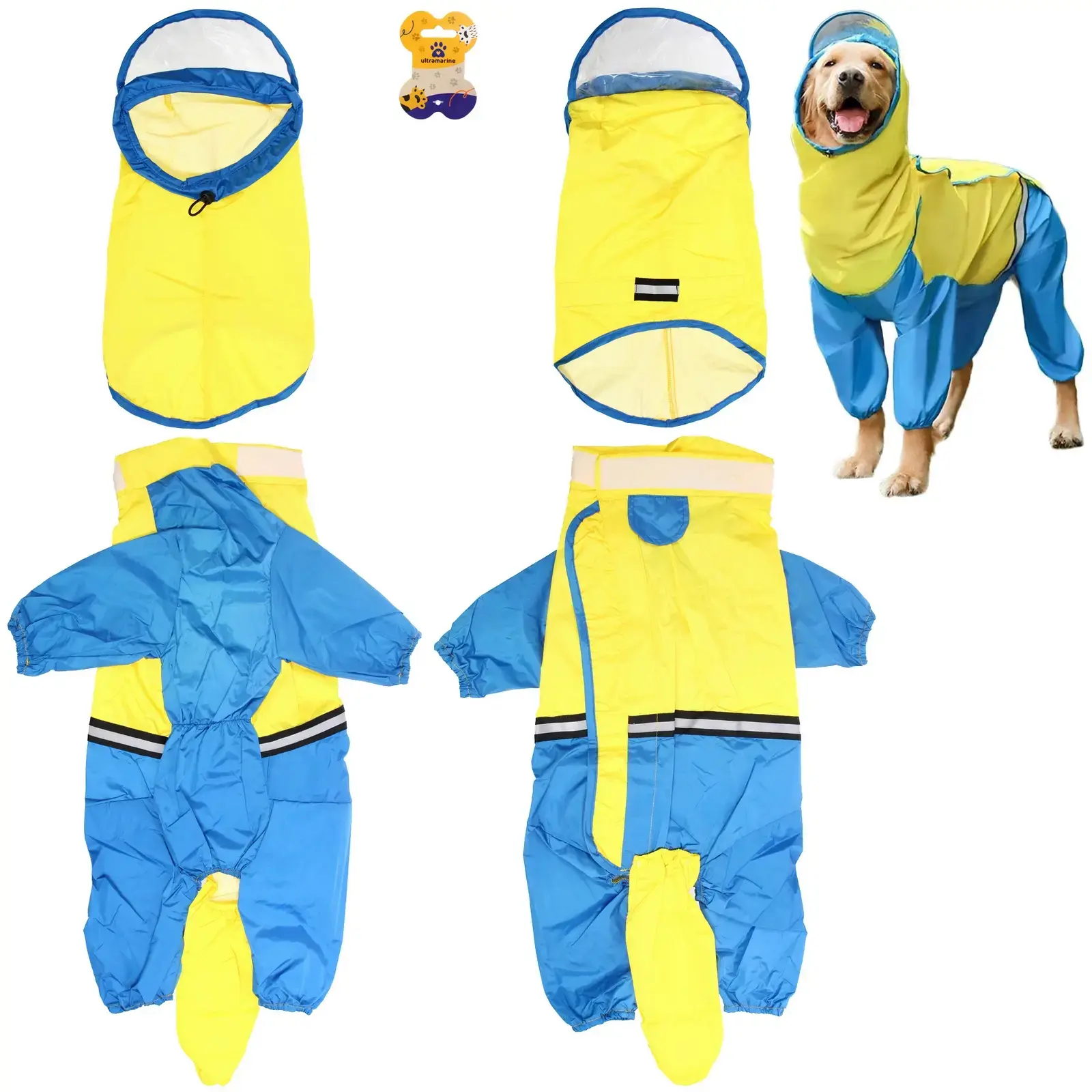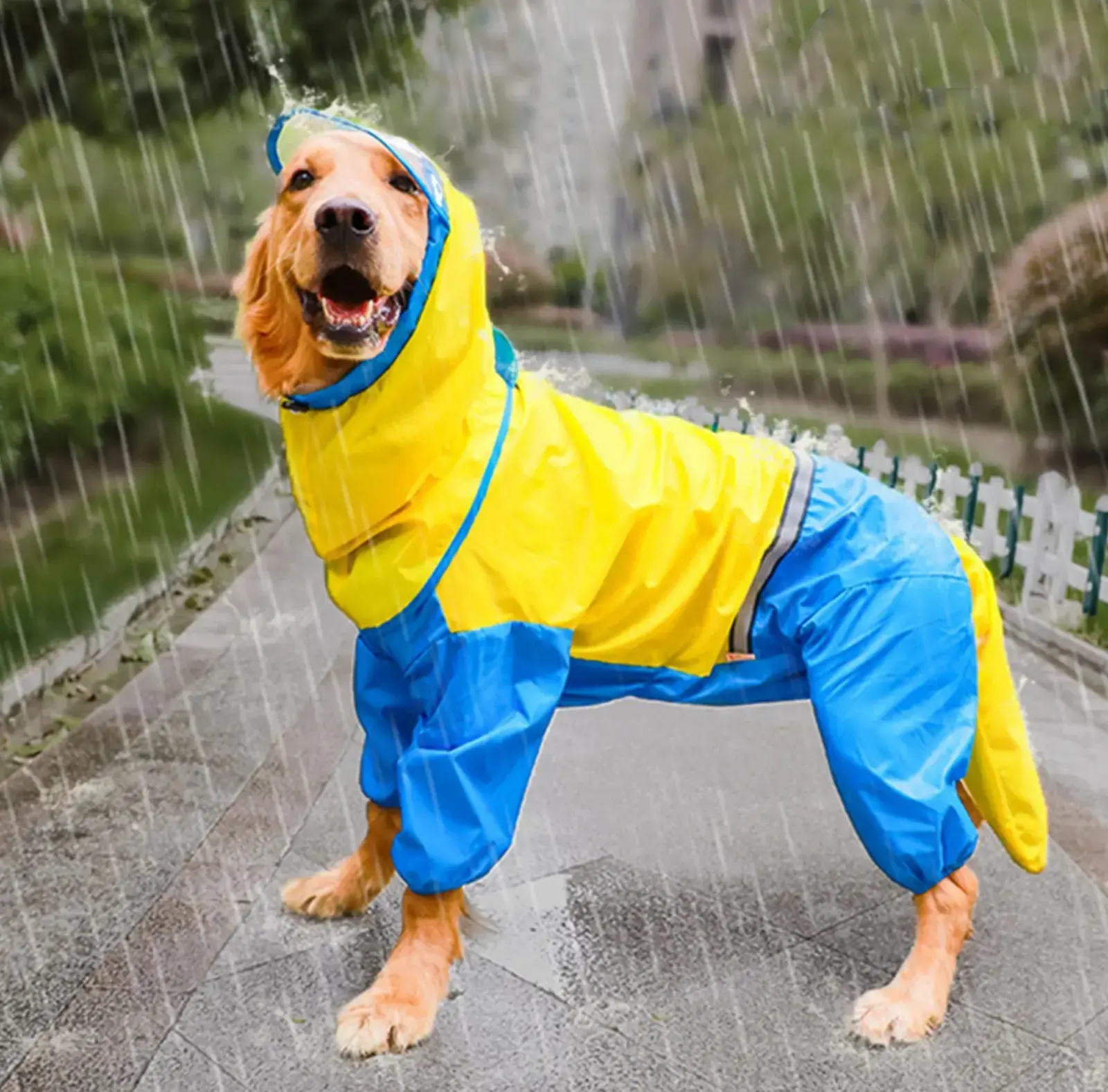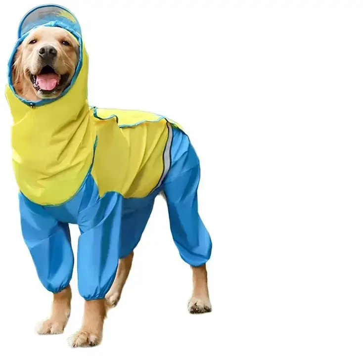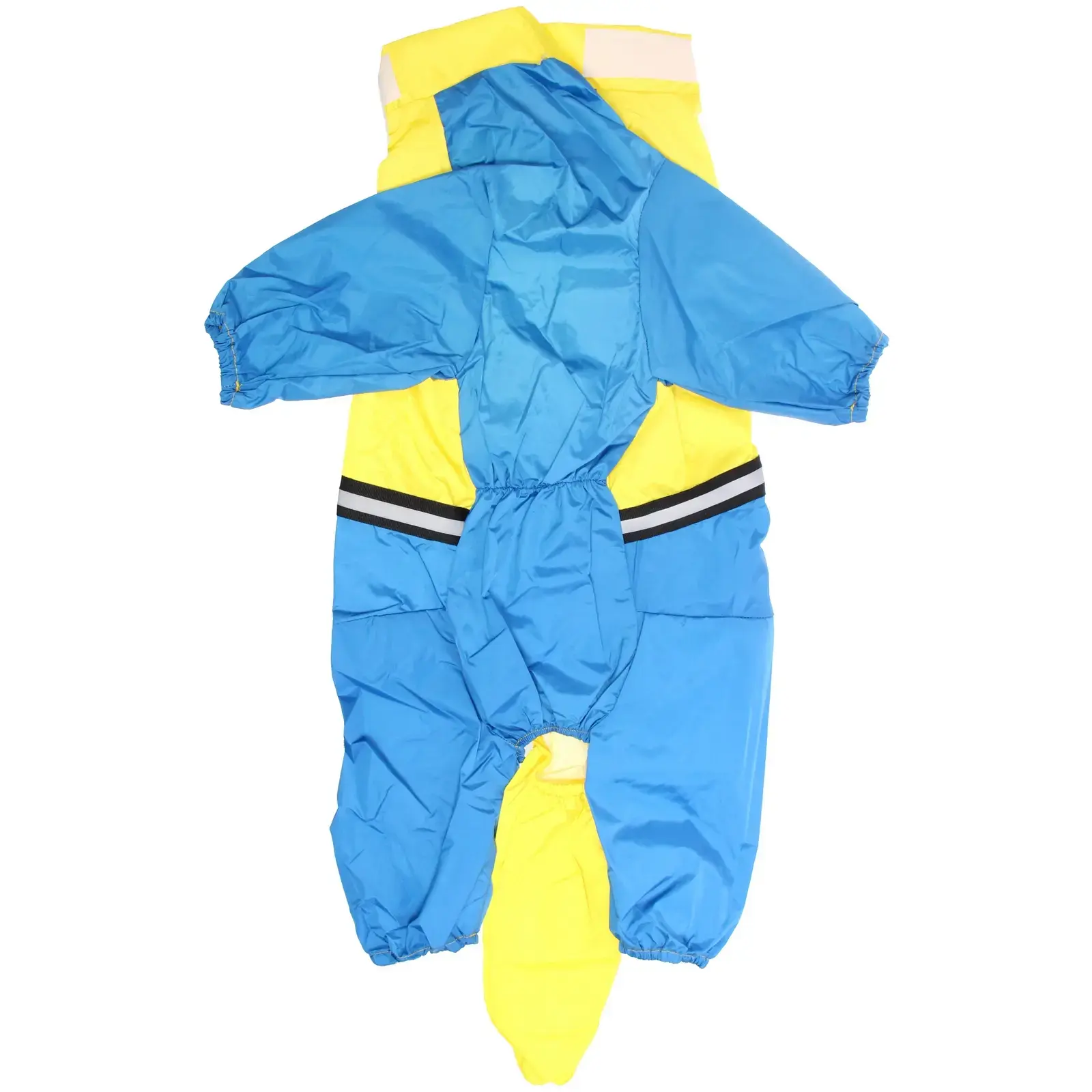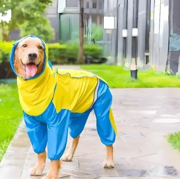 Дождевик предназначен для крупных пород собак и имеет размер XL, что обеспечивает идеальную посадку. Он легко надевается и снимается благодаря удобным застежкам и регулируемым элементам. Капюшон защищает голову и шею собаки, а свободные брючины позволяют питомцу свободно двигаться, не ограничивая его активность.