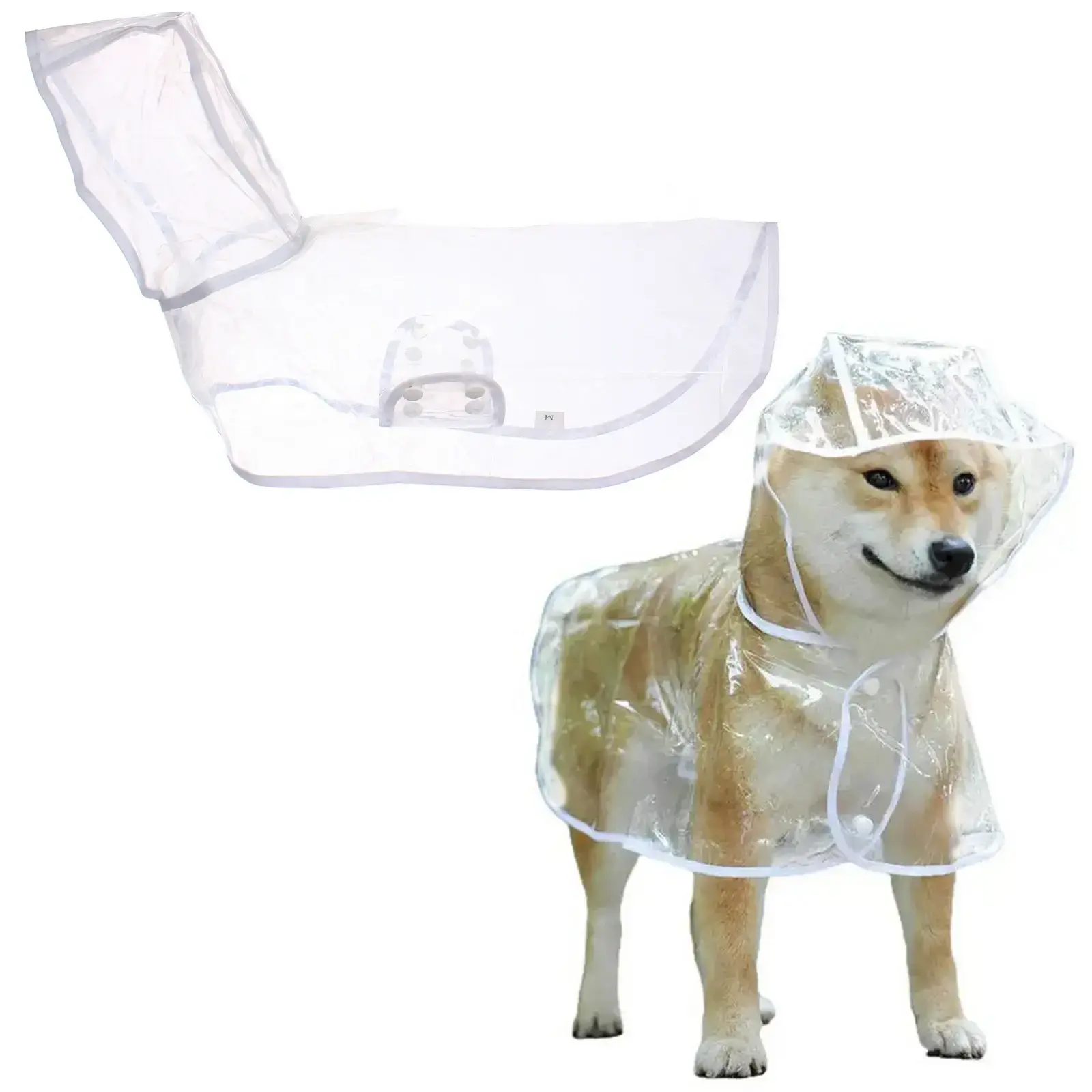 Дождевик легко надевается благодаря застежкам и капюшону, который надежно фиксируется на голове собаки. Он подходит для прогулок в дождливую погоду, обеспечивая защиту от дождя и грязи. Дождевик подходит для собак с обхватом груди 38-41 см и длиной 30 см, что делает его идеальным выбором для шиба-ину и других мелких пород.