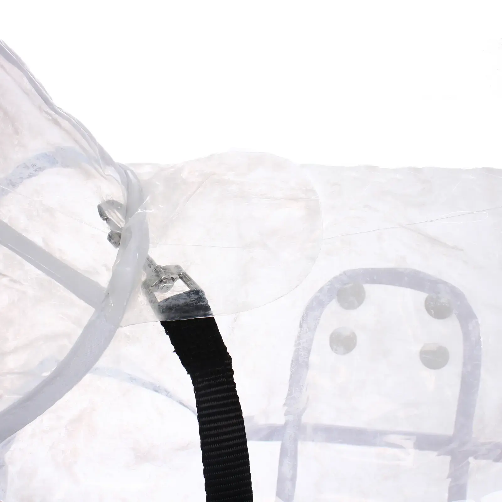 Выбирая дождевик «KOMFORT», вы получаете не только защиту, но и стильный аксессуар для вашего питомца. Прозрачный материал позволяет видеть, что находится под дождевиком, а белые и серые элементы добавляют изюминку в образ. Дождевик подходит для собак среднего размера, обеспечивая комфортную посадку и свободу движений.