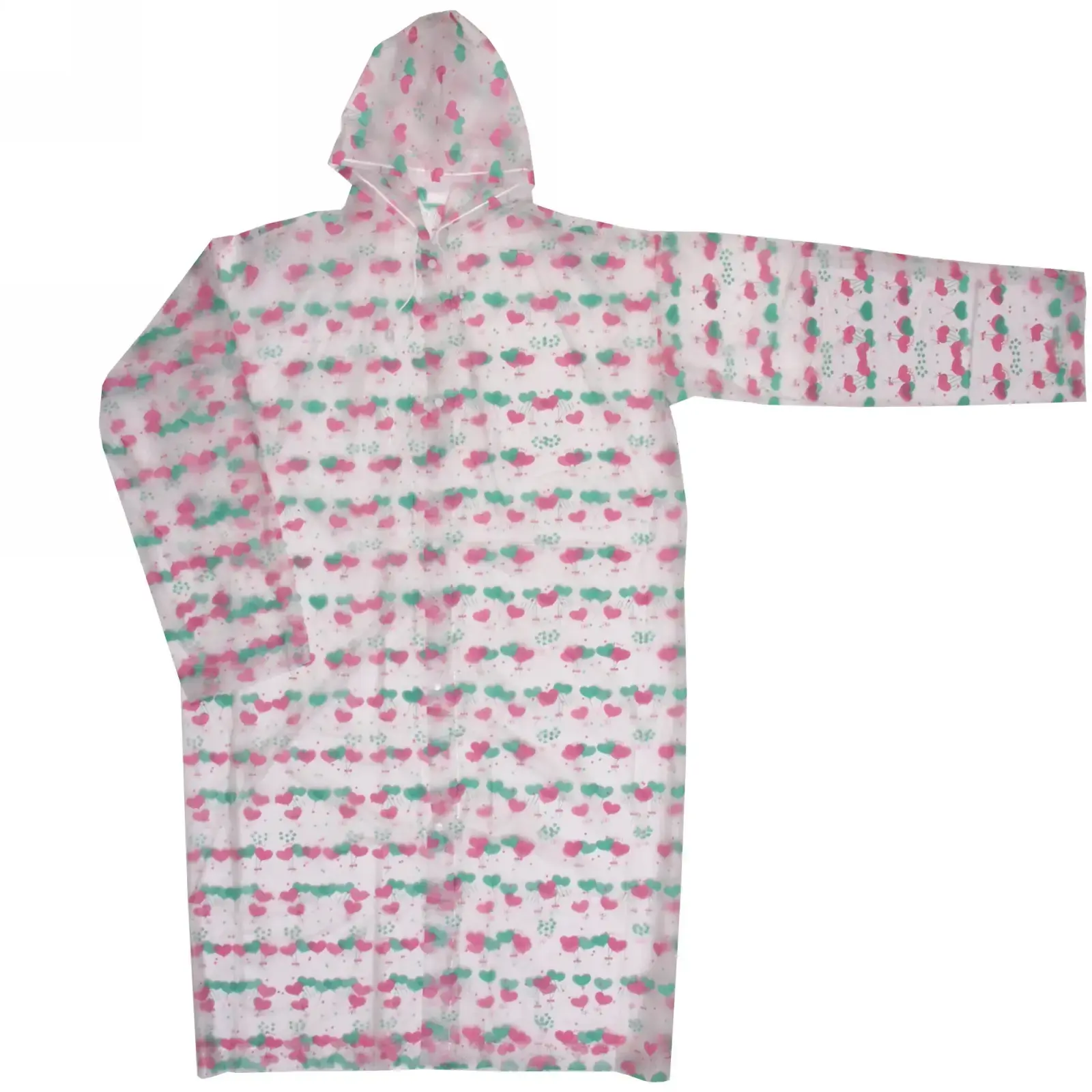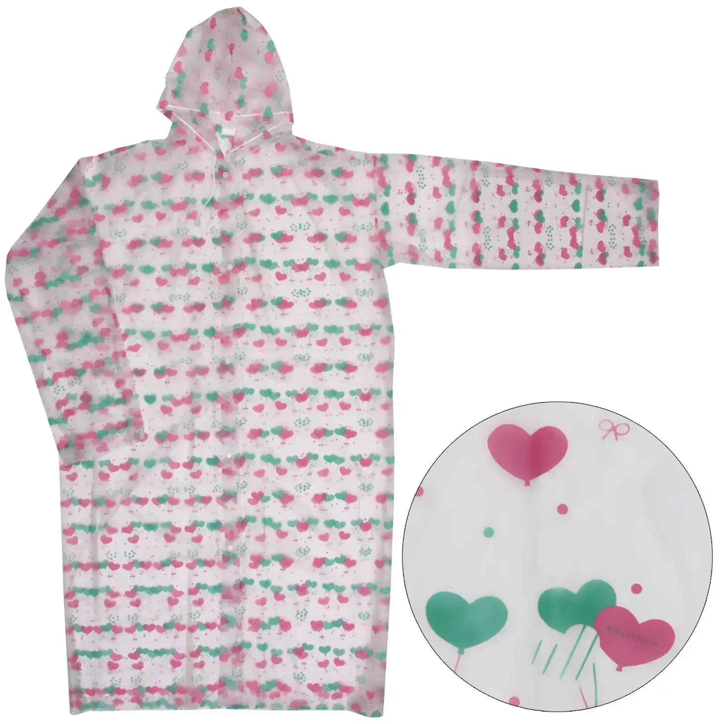 Этот дождевик-плащ станет вашим надежным спутником в дождливую погоду. Изготовленный из плотного и водоотталкивающего материала, он обеспечит вам комфорт и защиту от влаги. Благодаря стильному дизайну с узором «Сердечки», вы будете выглядеть ярко и привлекательно даже в ненастье.
