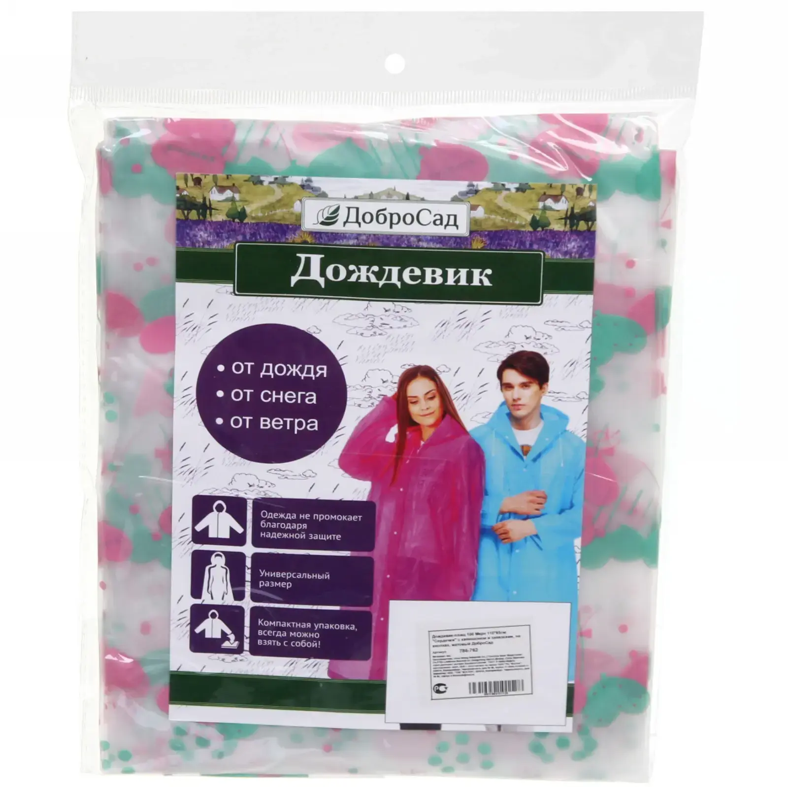 Дождевик имеет капюшон и застежку на кнопках, что позволяет легко надевать и снимать его. Он идеально подходит для прогулок по городу, поездок на дачу или активного отдыха на природе. Компактные размеры в сложенном состоянии позволяют удобно хранить дождевик в сумке или рюкзаке, что делает его незаменимым аксессуаром в вашем гардеробе.