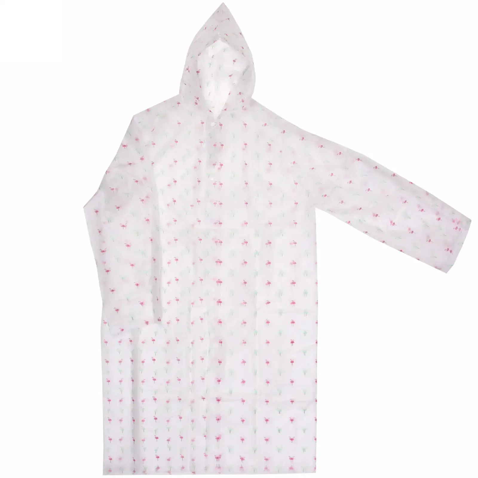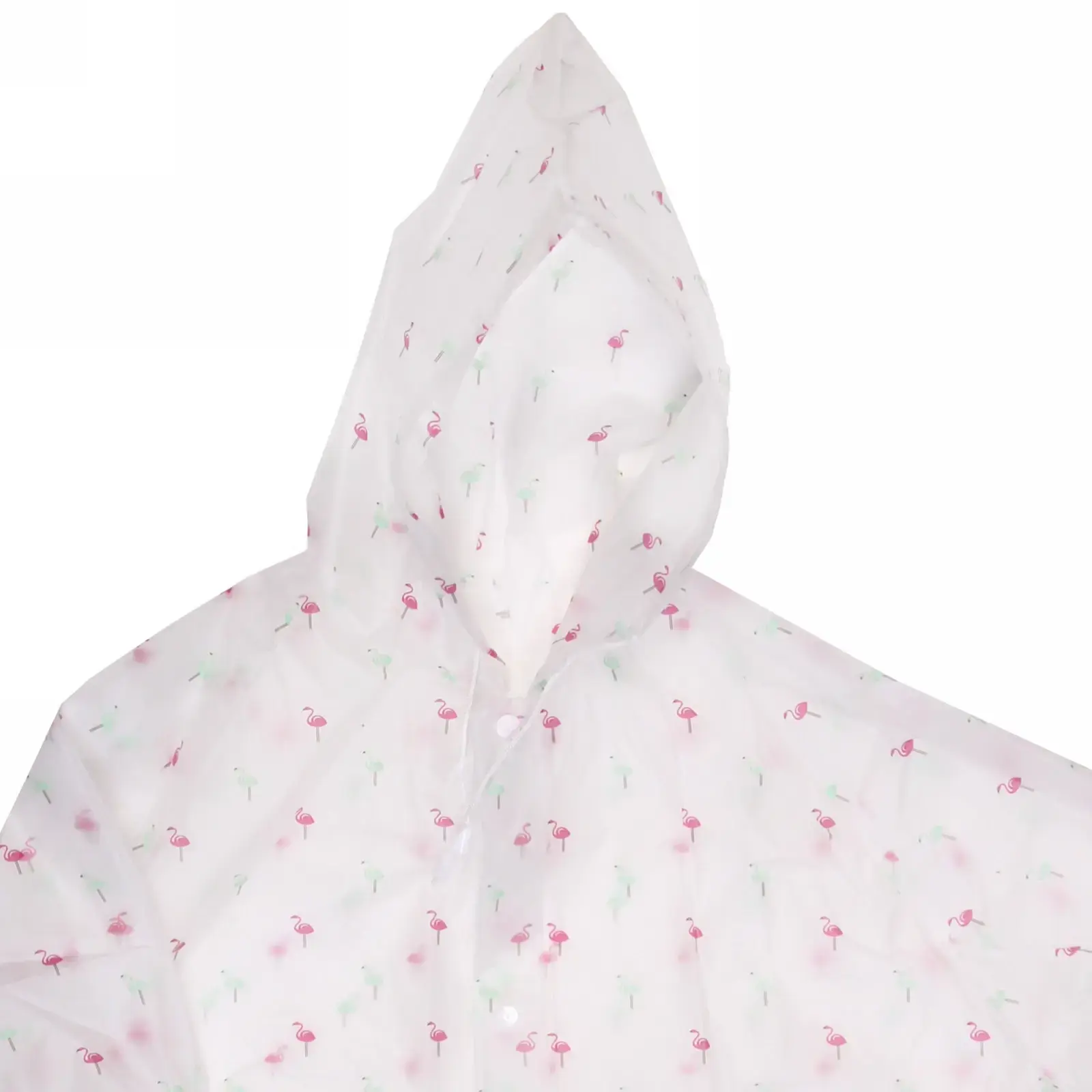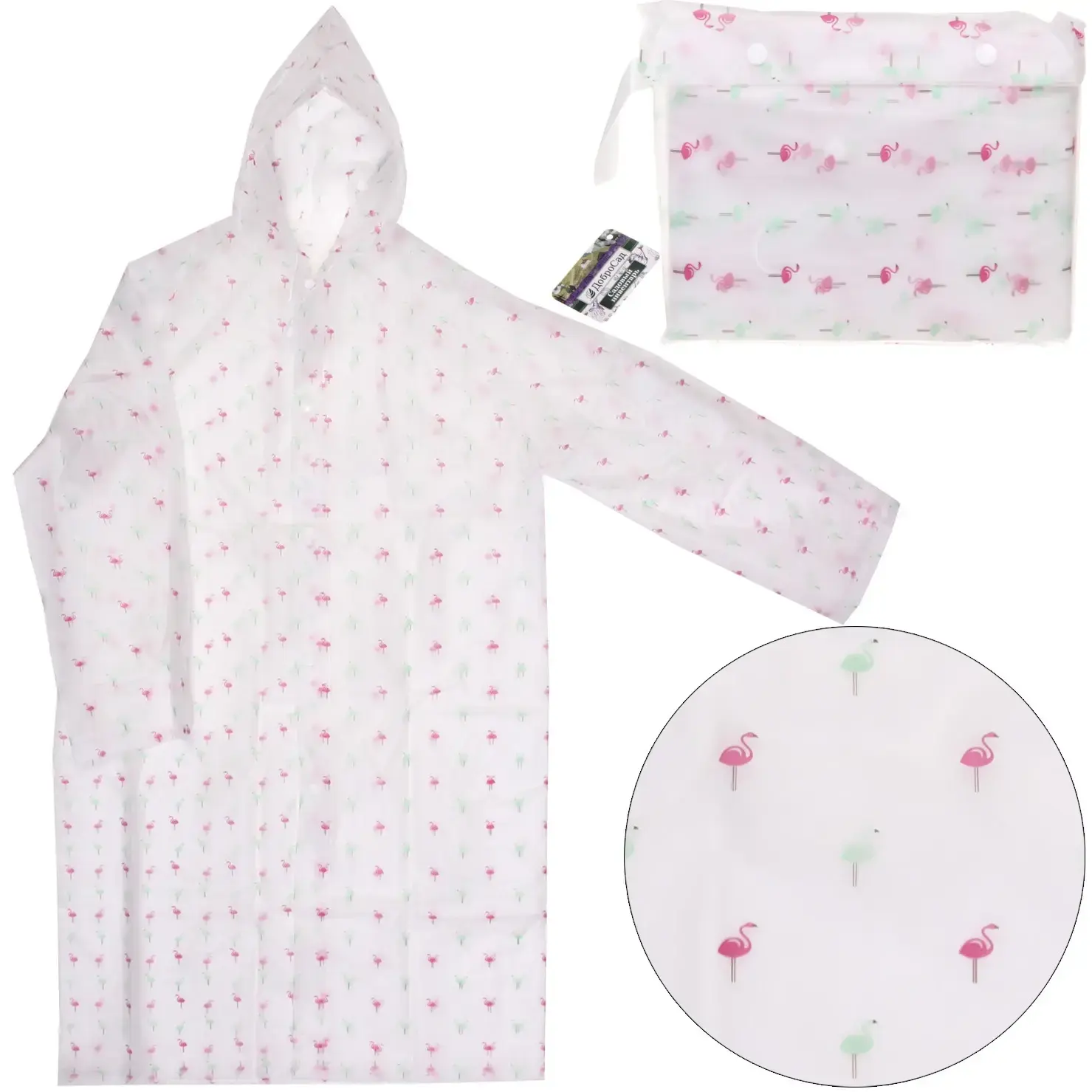 Практичный дождевик с ярким принтом фламинго станет вашим надежным спутником в непогоду. Легкий материал ПВХ обеспечивает полную водонепроницаемость, а свободный крой позволяет носить плащ поверх любой одежды.