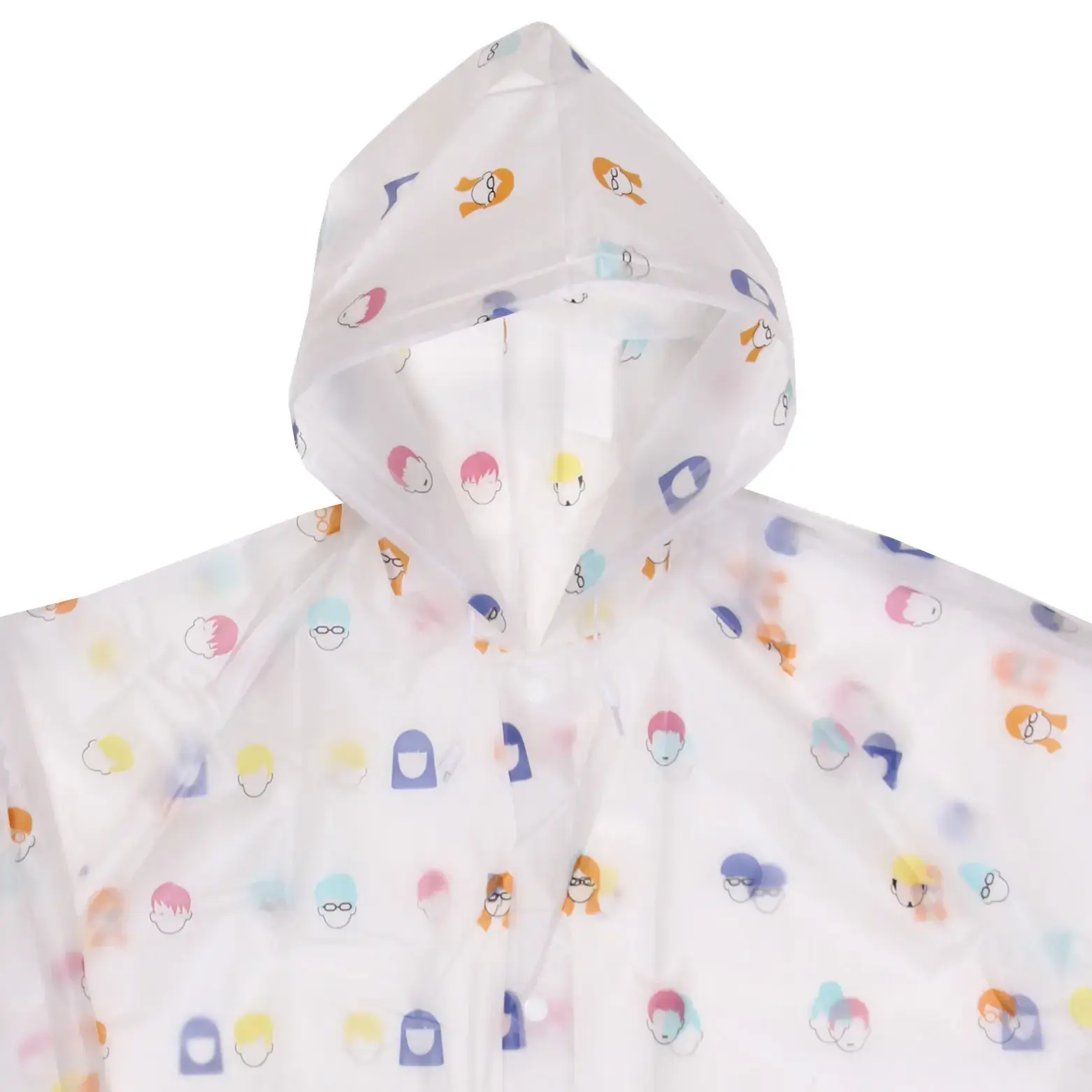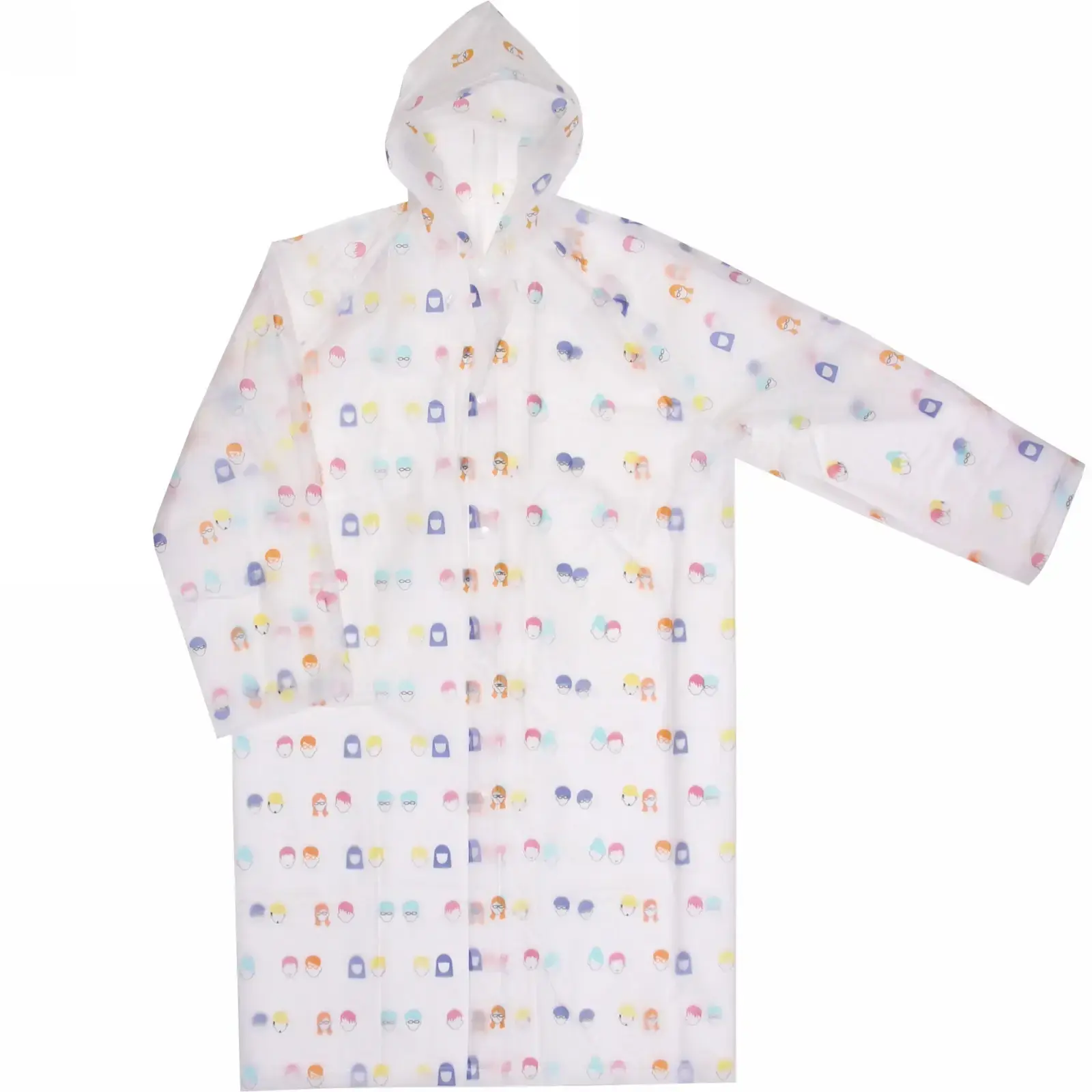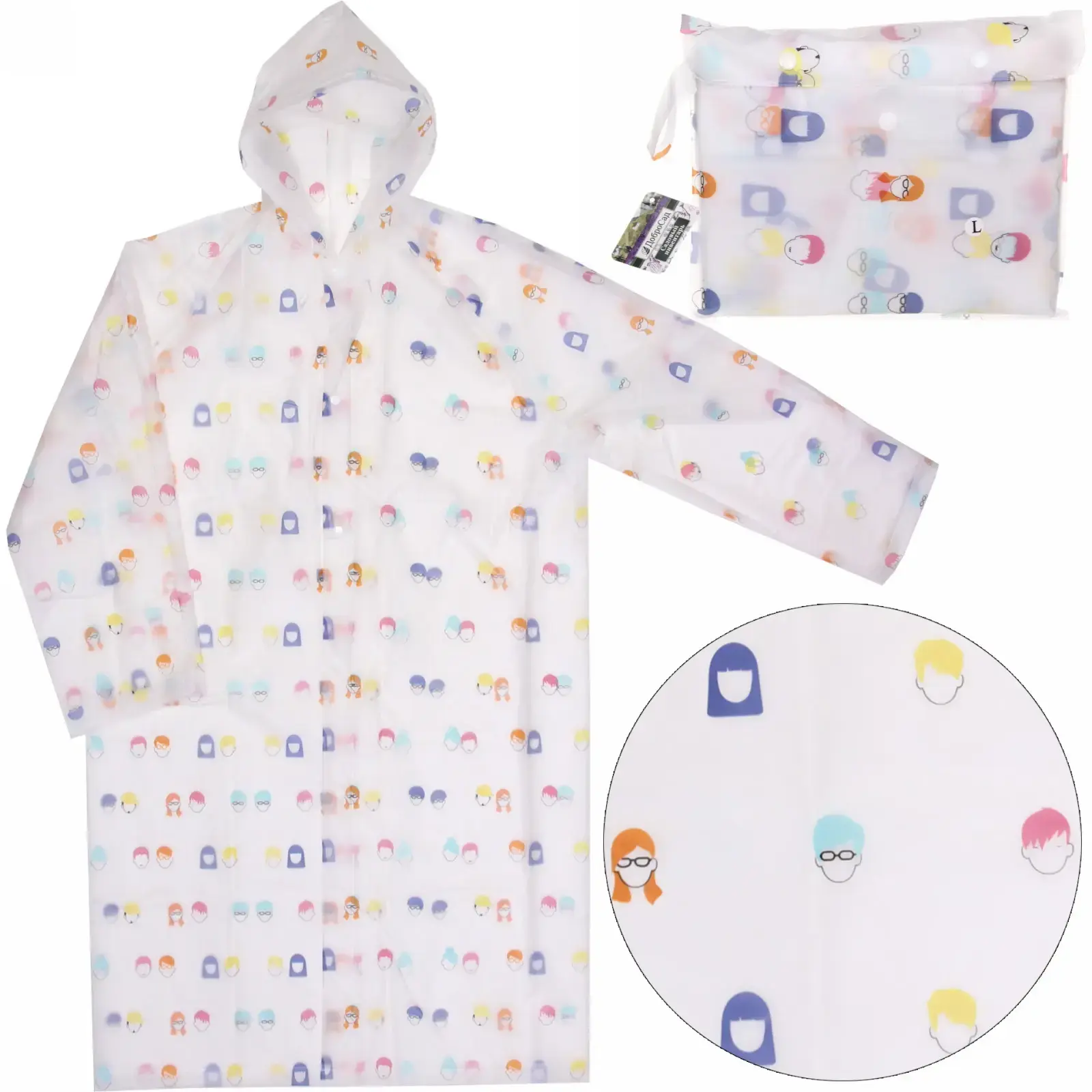Прозрачный дождевик с ярким принтом станет вашим верным спутником в непогоду. Лёгкий материал ПВХ не пропускает влагу, а свободный крой позволяет носить плащ поверх любой одежды.