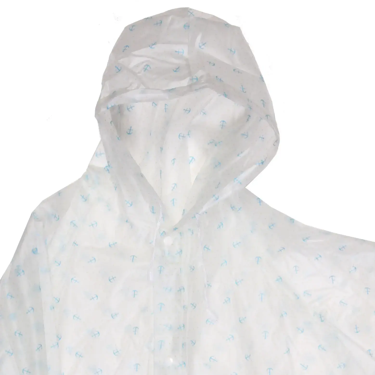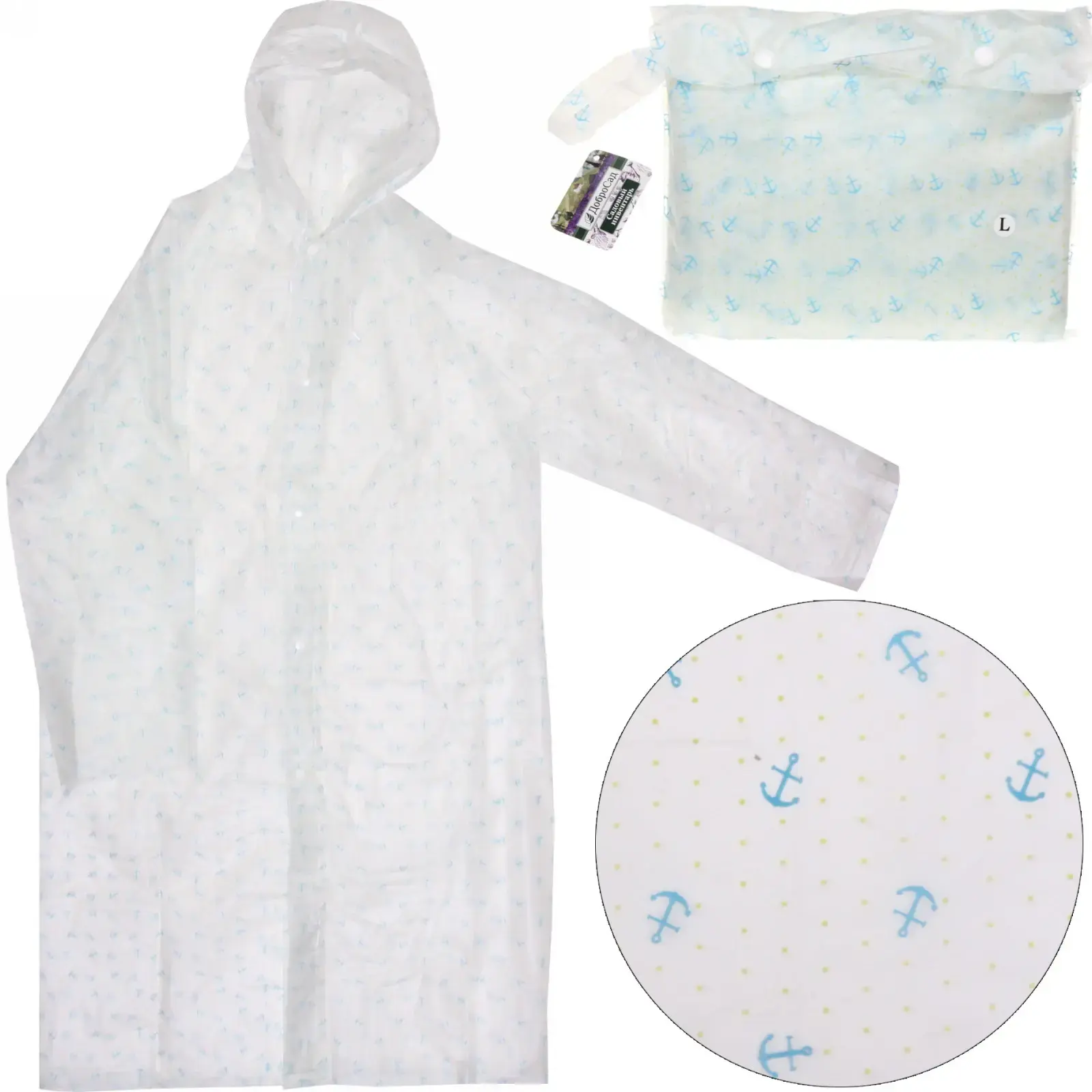 Прозрачный дождевик с морским дизайном станет вашим верным спутником в непогоду. Лёгкий материал ПВХ с водоотталкивающей пропиткой обеспечивает полную сухость, а стильный принт с якорями добавит индивидуальности вашему образу.