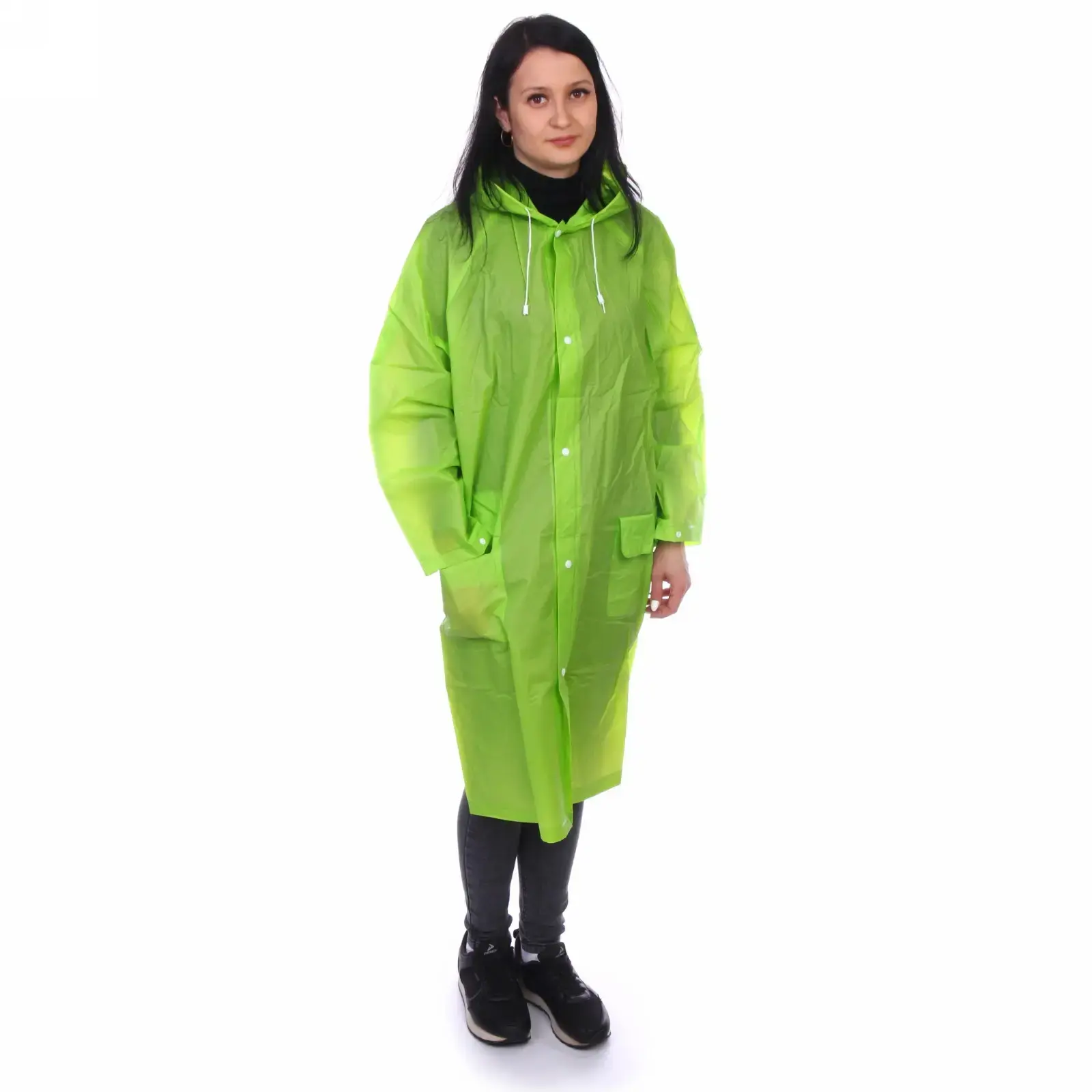 Дождевик 'Урал' на кнопках, ПВХ, зеленый, с капюшоном и карманами