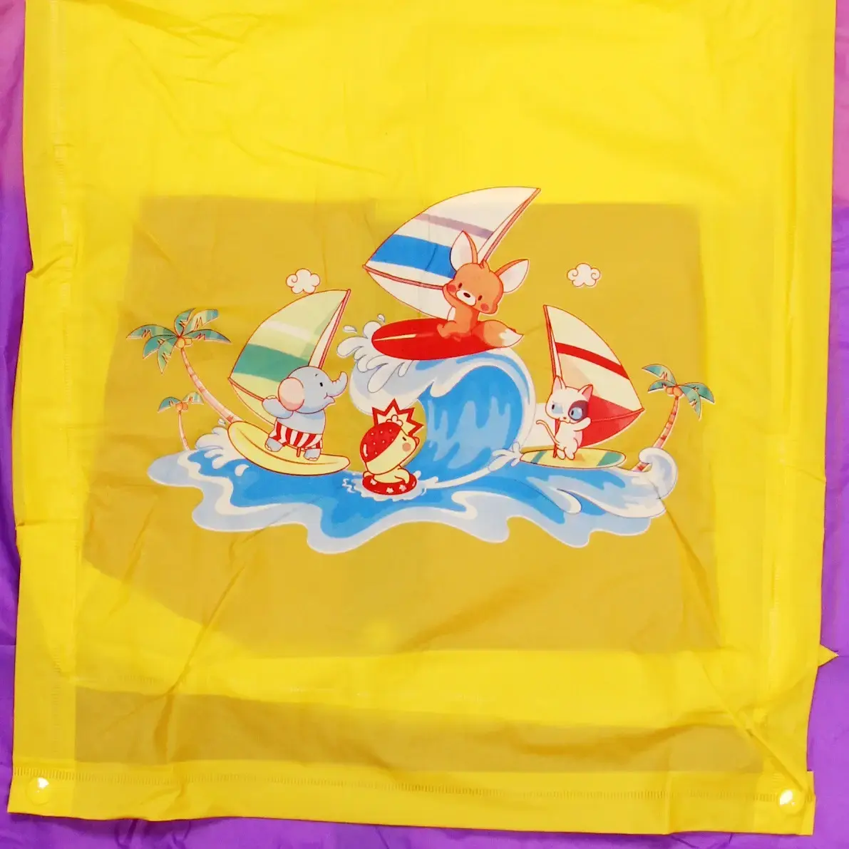 Яркий дождевик с капюшоном создан для активных малышей, которые не хотят прятаться от летнего ливня. Водоотталкивающий пластик с защитой от ветра сохранит сухость во время прогулок, а удобные застёжки-кнопки позволят быстро надеть плащ даже непоседливому ребёнку.